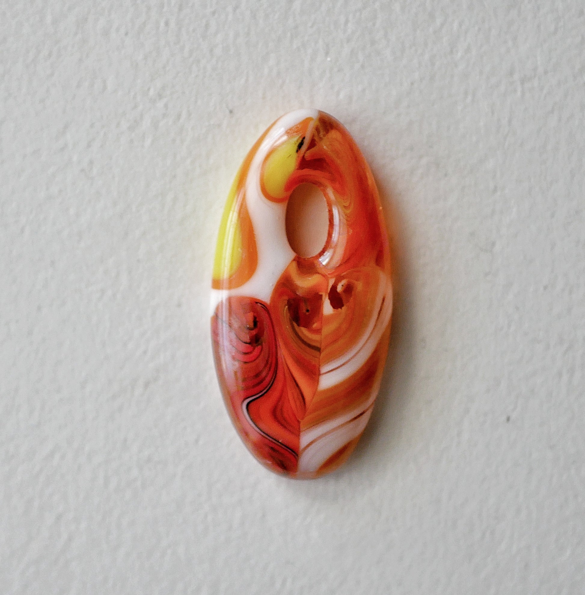 NOTE: This is a handmade glass item. That means it's a little bit fragile. I recommend not wearing it with other necklaces that can clink against it, avoiding dropping it, and don't take it suddenly from one temperature to another. Art glass is not mouth safe.