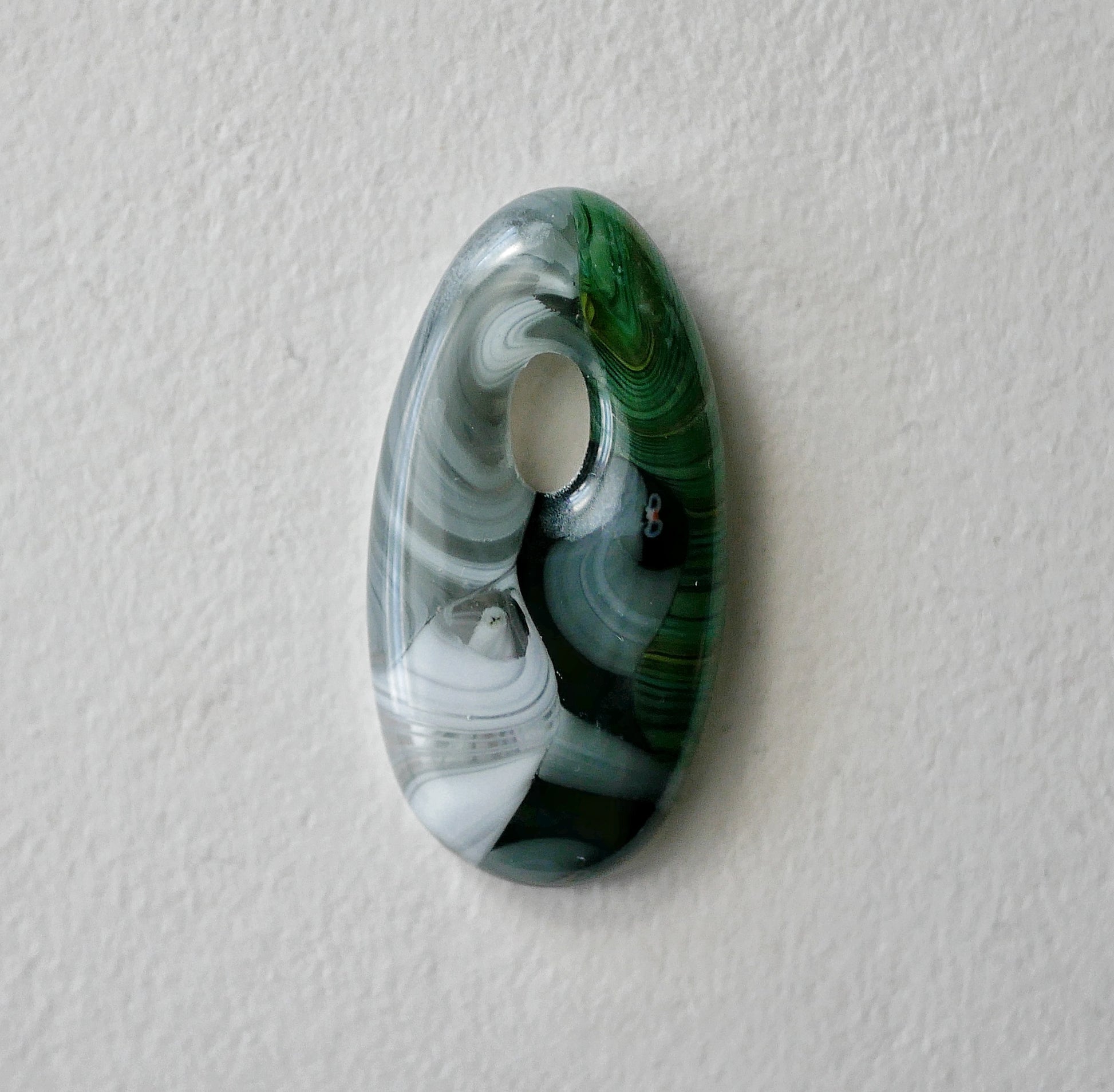 NOTE: This is a handmade glass item. That means it's a little bit fragile. I recommend not wearing it with other necklaces that can clink against it, avoiding dropping it, and don't take it suddenly from one temperature to another. Art glass is not mouth safe.