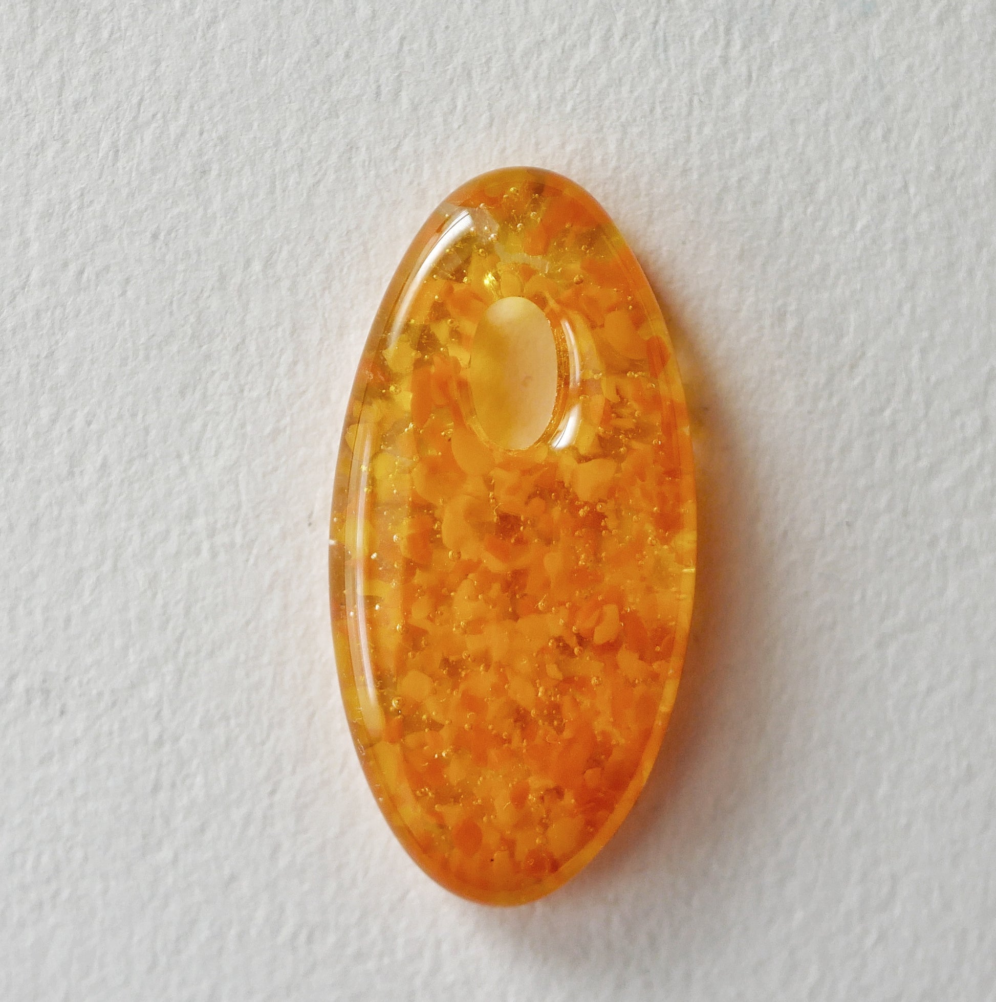 NOTE: This is a handmade glass item. That means it's a little bit fragile. I recommend not wearing it with other necklaces that can clink against it, avoiding dropping it, and don't take it suddenly from one temperature to another. Art glass is not mouth safe.