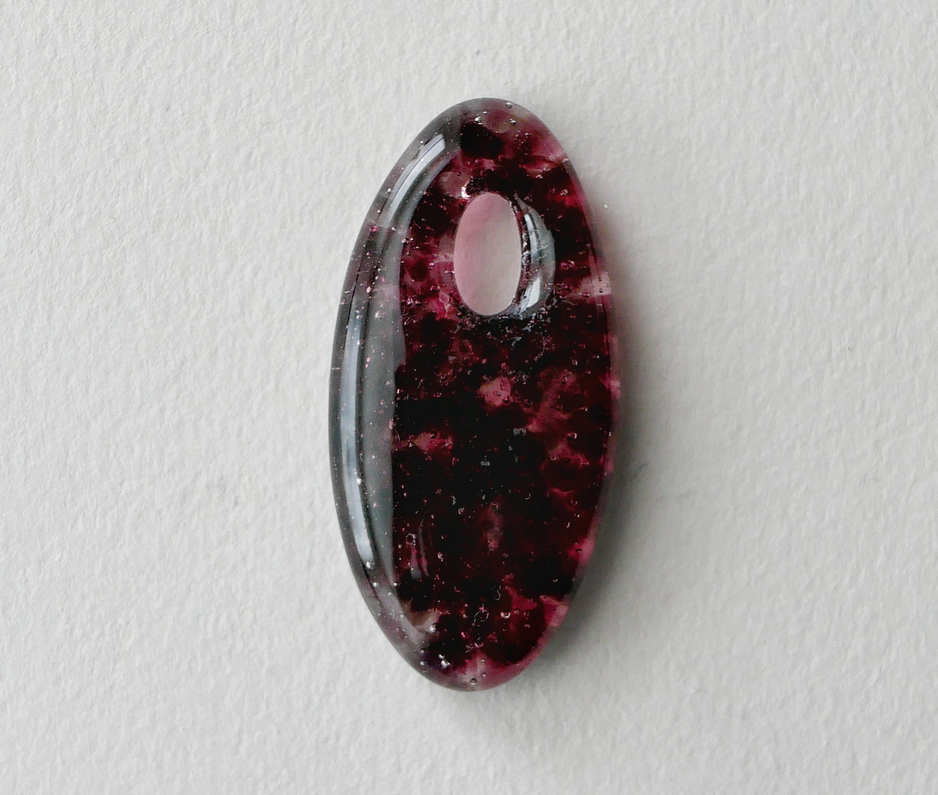 NOTE: This is a handmade glass item. That means it's a little bit fragile. I recommend not wearing it with other necklaces that can clink against it, avoiding dropping it, and don't take it suddenly from one temperature to another. Art glass is not mouth safe.