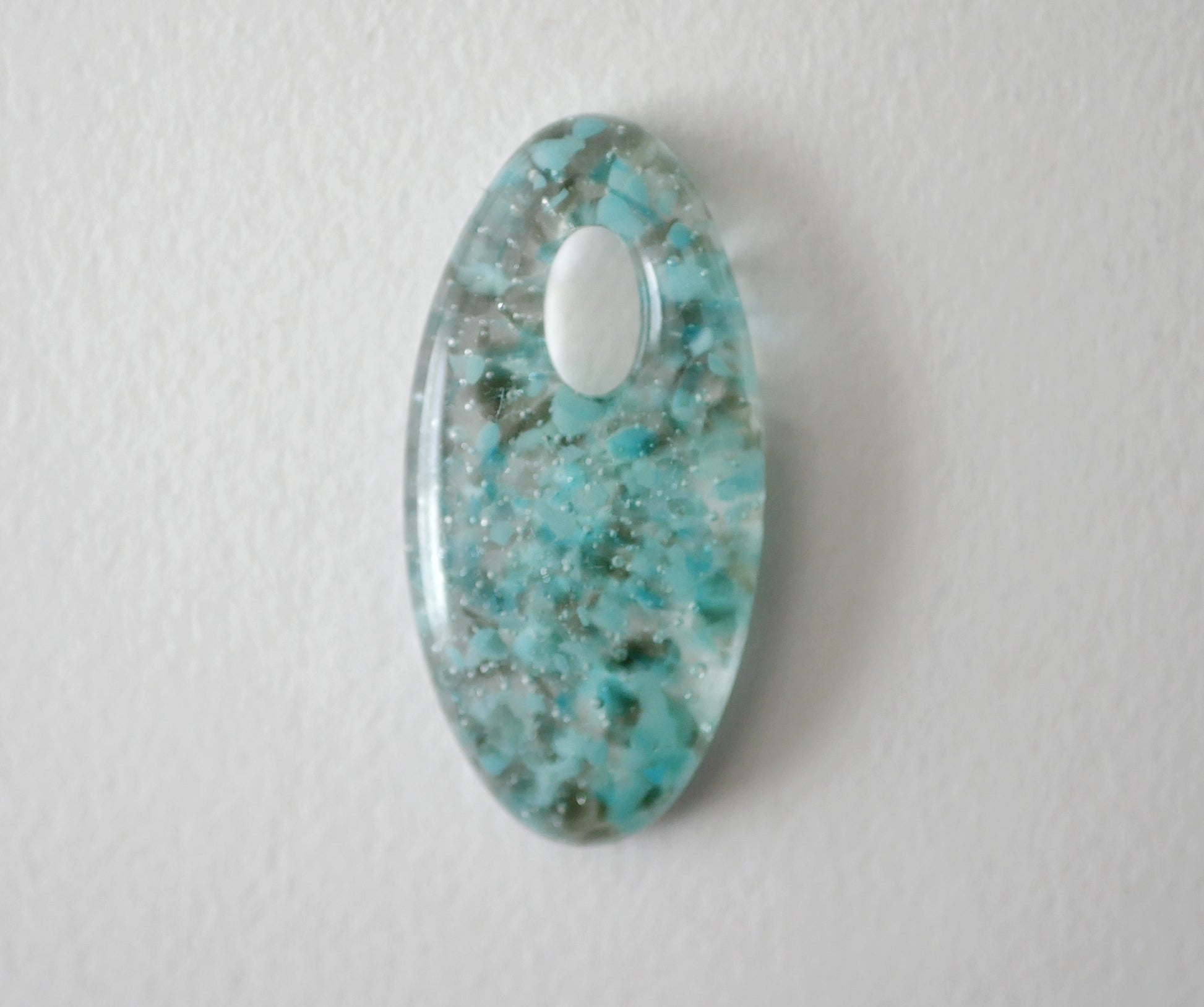 Oval Pendant: Turquoise Blues and Grey (PENDANT ONLY)