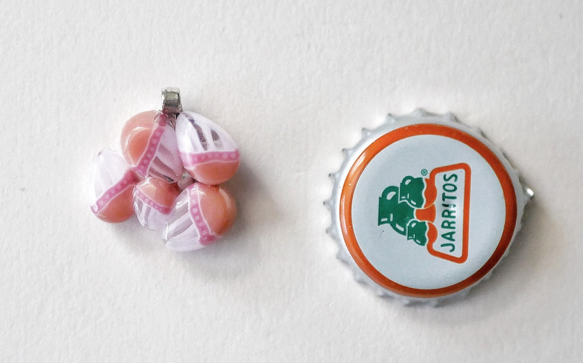 This one uses murrine cane that has been rounded but not fully melted, making the final piece bumpy. Because of this it has thinner parts and the joinings are a little bit less sturdy; you're going to want to be extra careful with it.