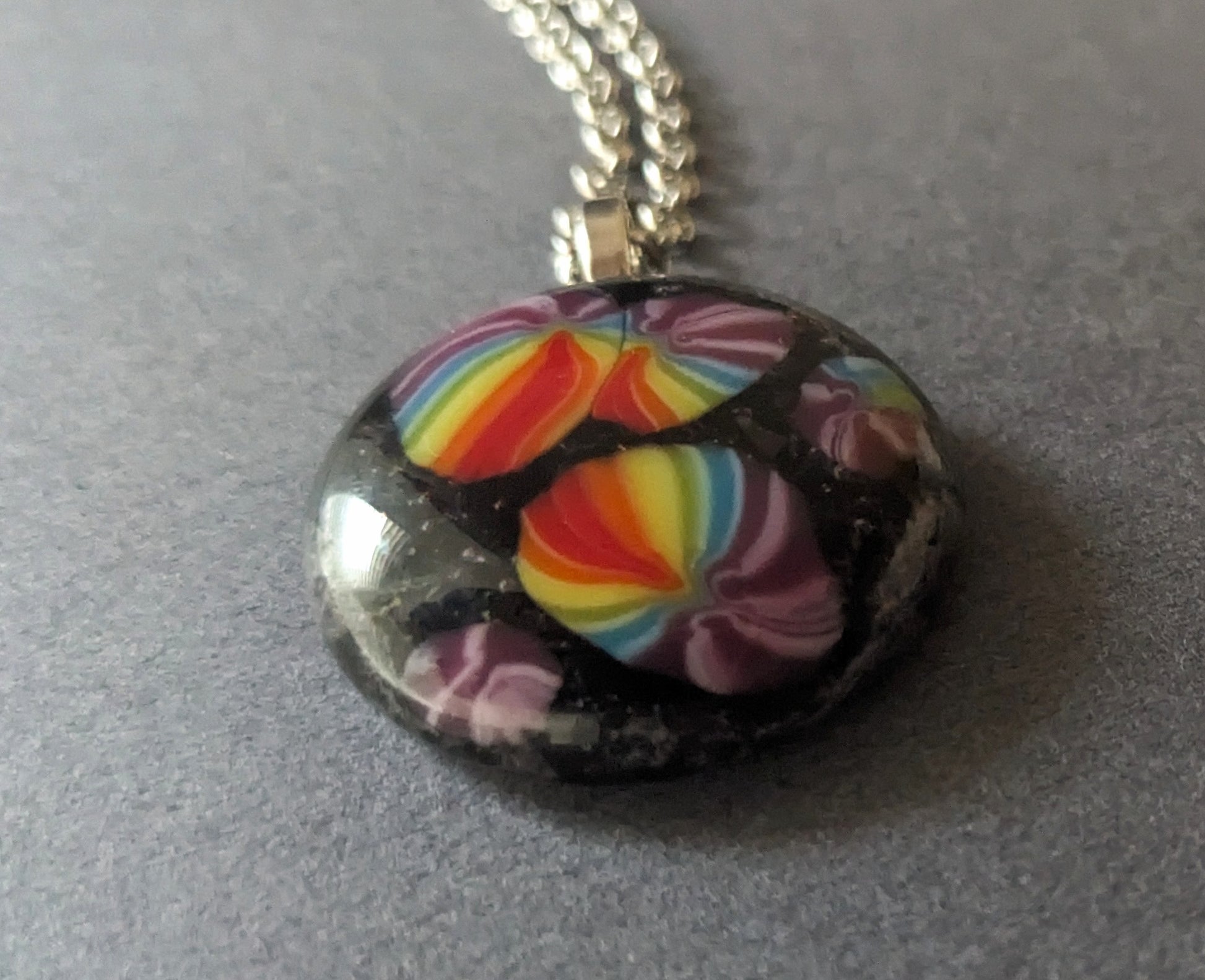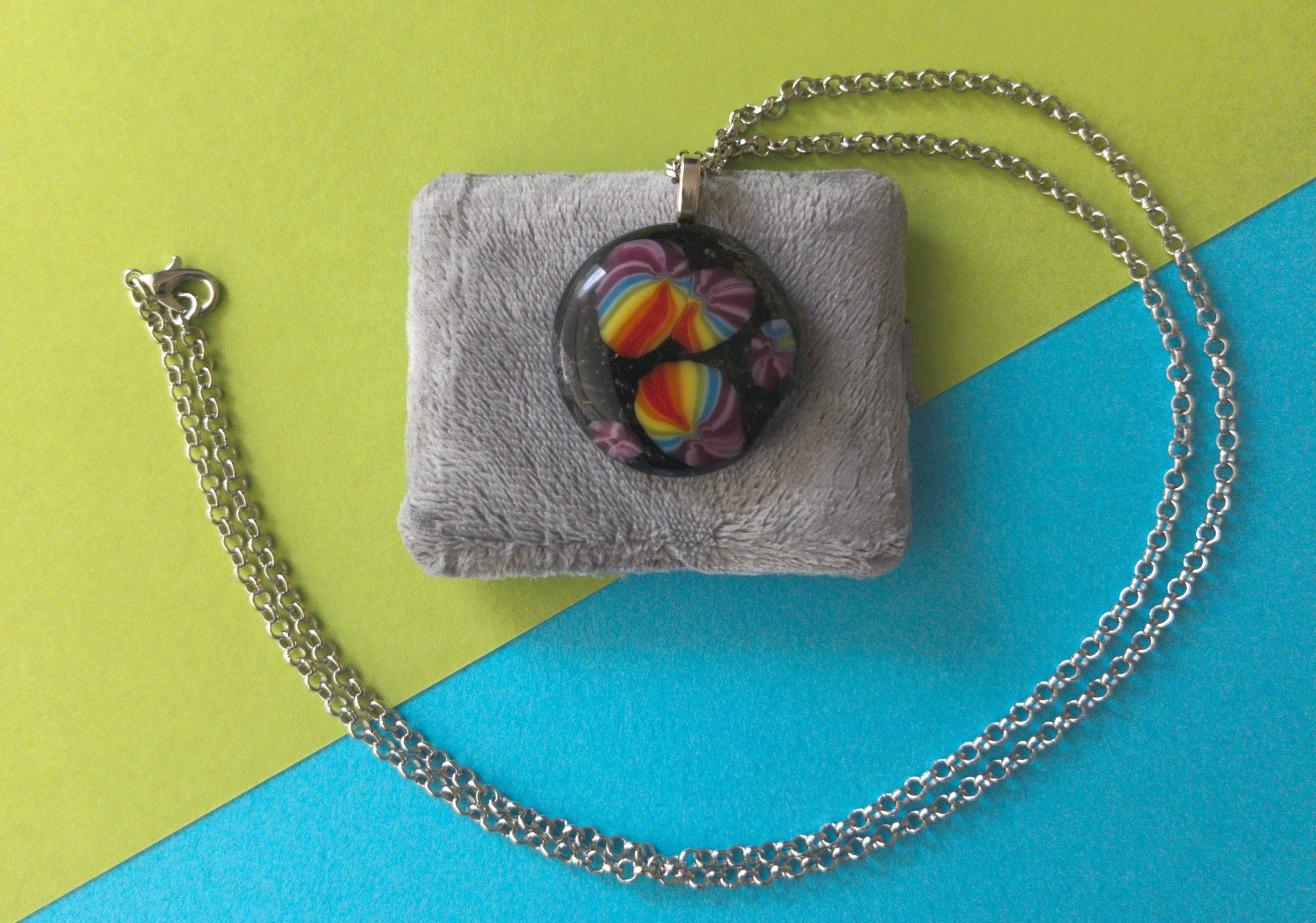 NOTE: This is a handmade glass item. That means it's a little bit fragile. I recommend not wearing it with other necklaces that can clink against it, avoiding dropping it, and don't take it suddenly from one temperature to another.