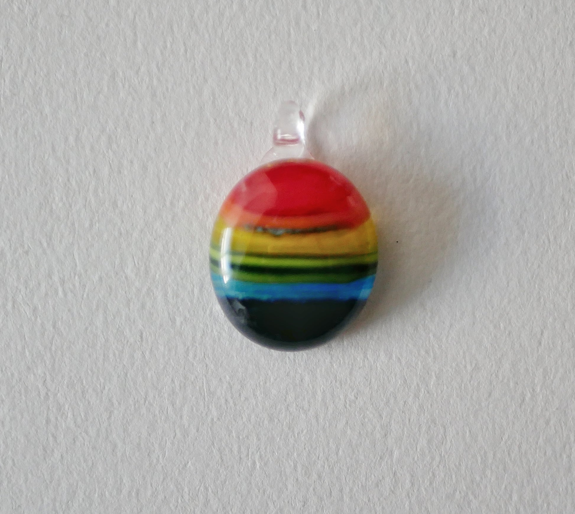 Handmade in my kiln by me! Oval rainbow glass pendant with glass bail. Each of these is a little bit different.