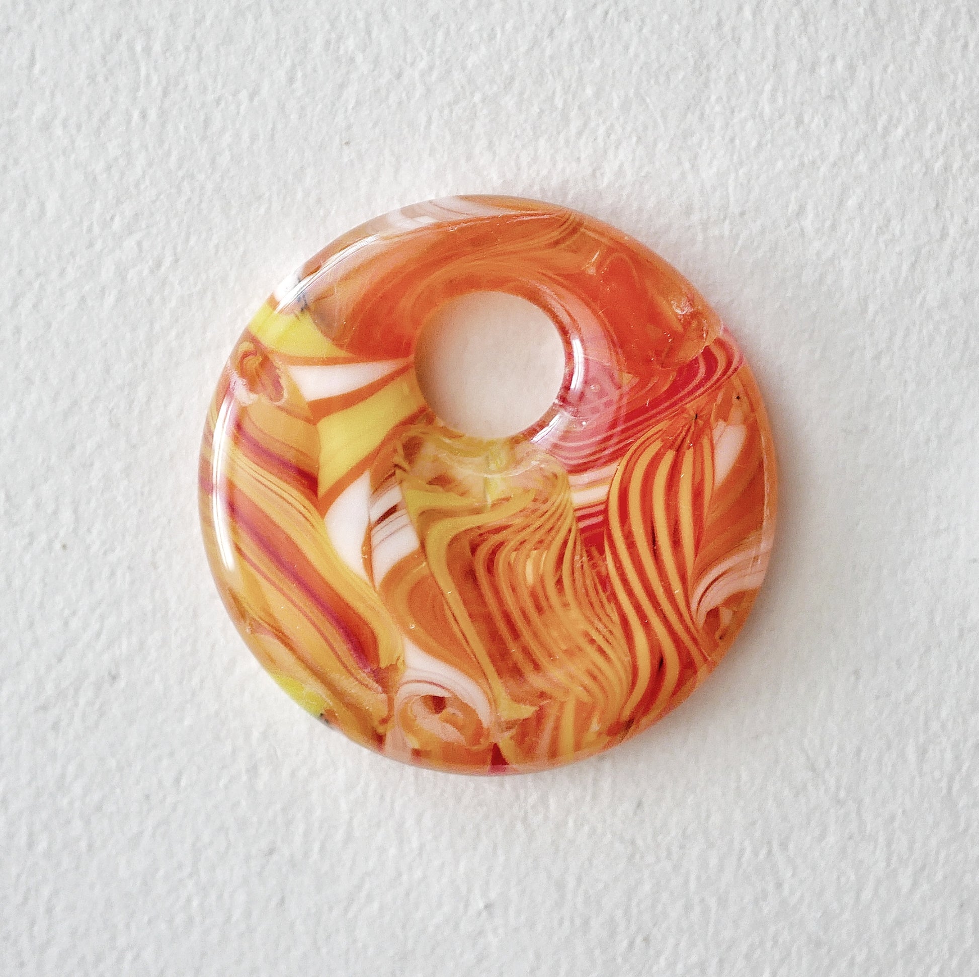 NOTE: This is a handmade glass item. That means it's a little bit fragile. I recommend not wearing it with other necklaces that can clink against it, avoiding dropping it, and don't take it suddenly from one temperature to another. Art glass is not mouth safe.