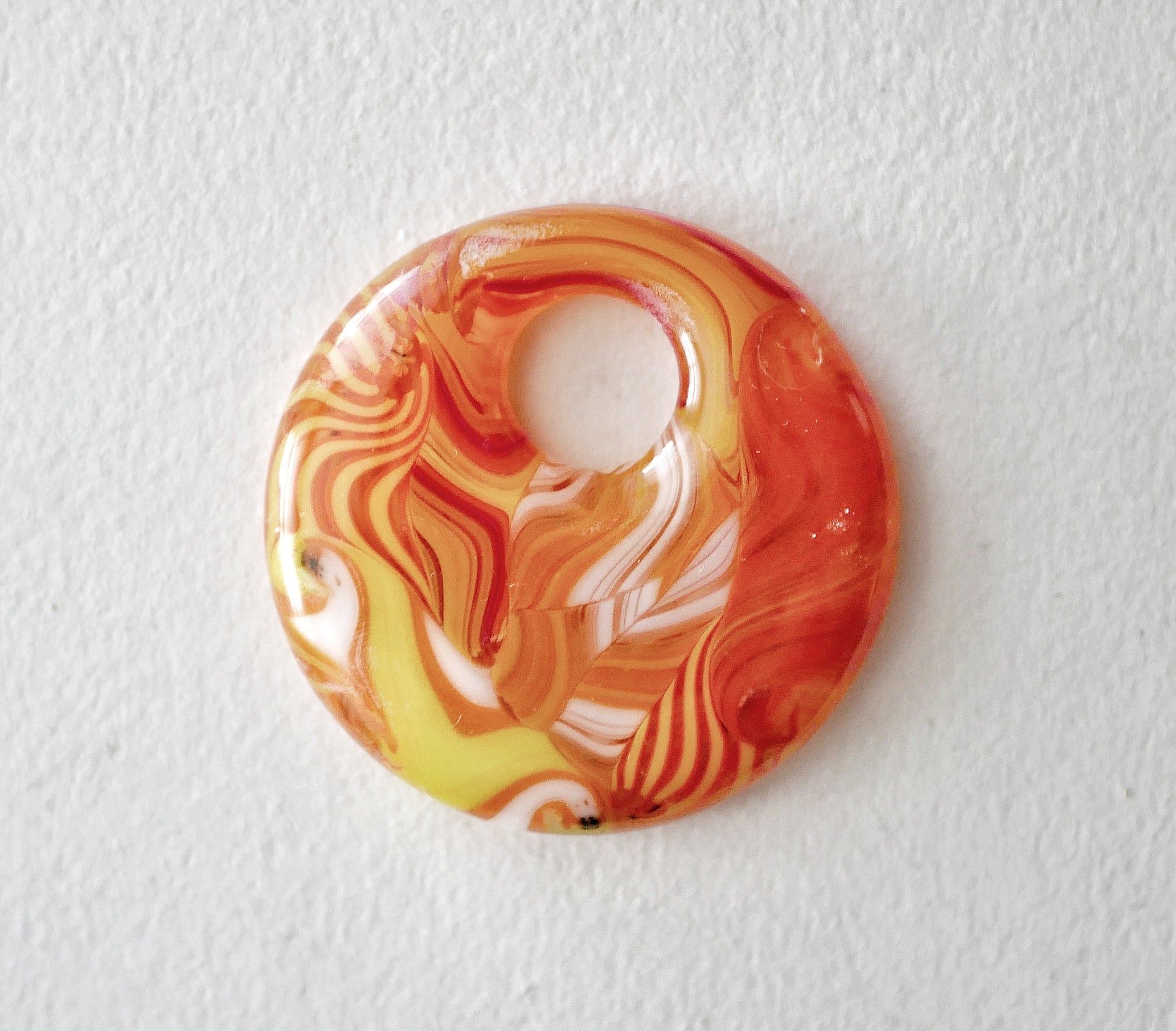 NOTE: This is a handmade glass item. That means it's a little bit fragile. I recommend not wearing it with other necklaces that can clink against it, avoiding dropping it, and don't take it suddenly from one temperature to another. Art glass is not mouth safe.