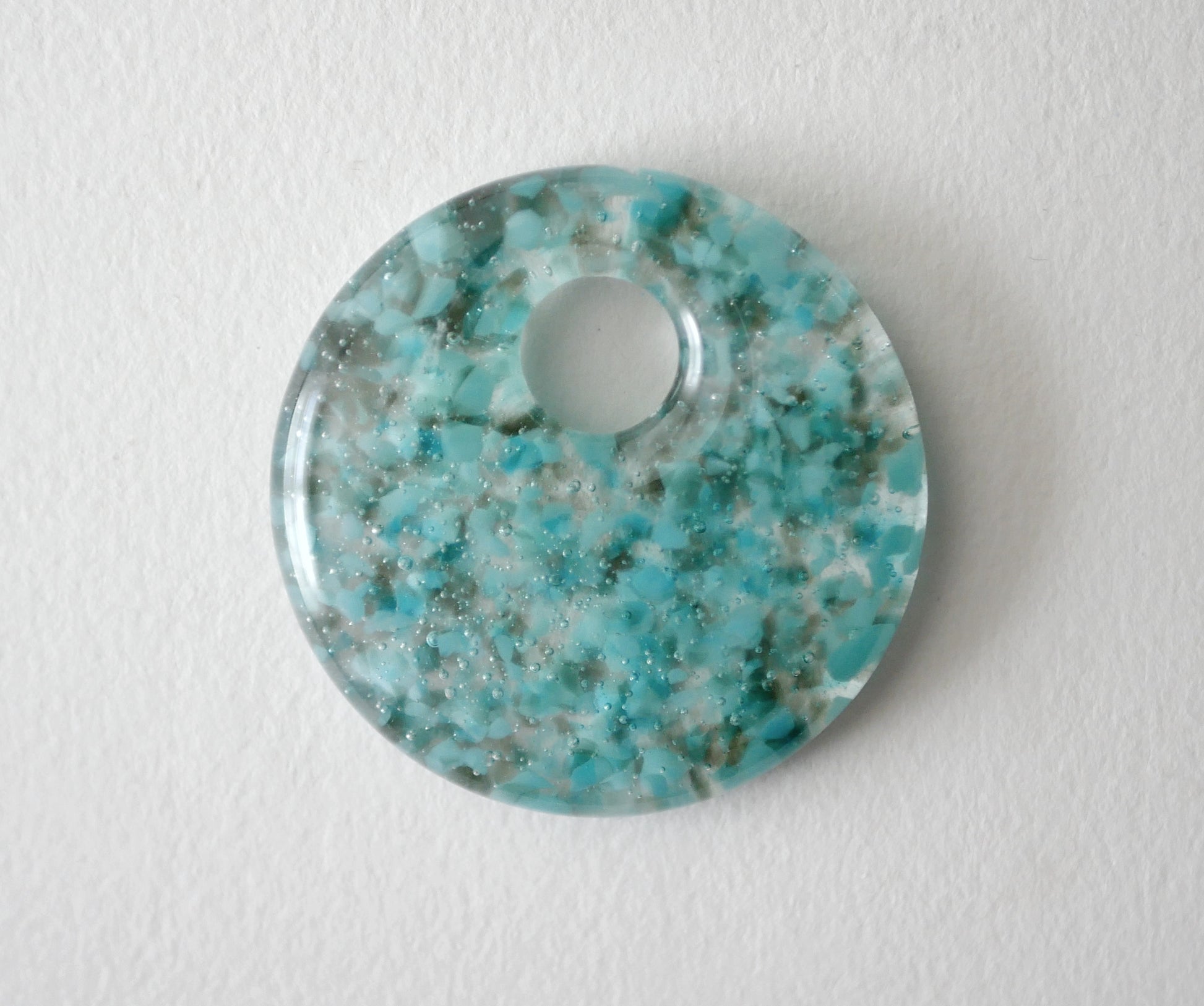 Round Pendant: Turquoise Blues and Grey (PENDANT ONLY)