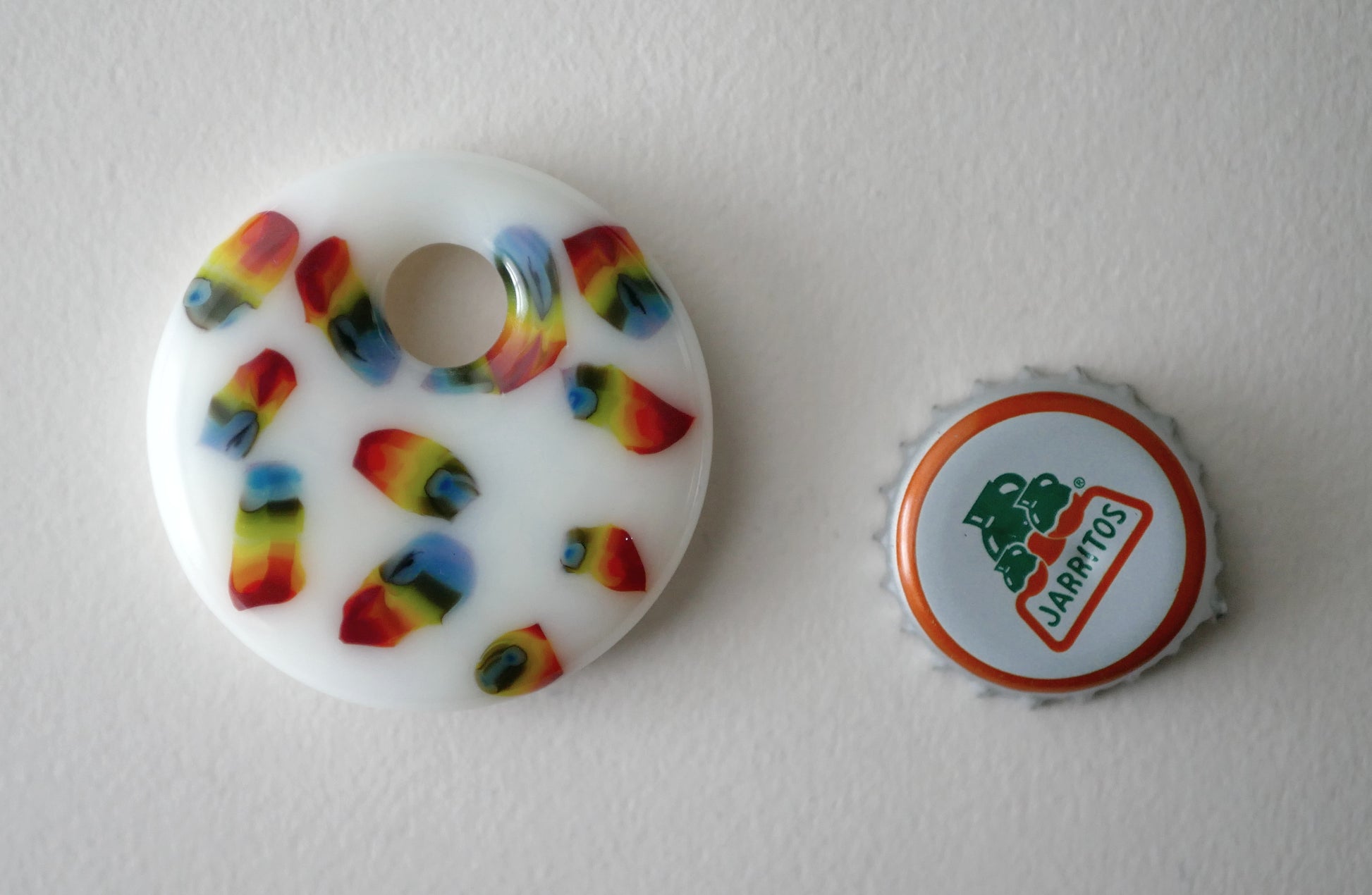 Handmade in my kiln by me! There are a few of these with slightly different patterning, you might not receive the exact one from the picture.