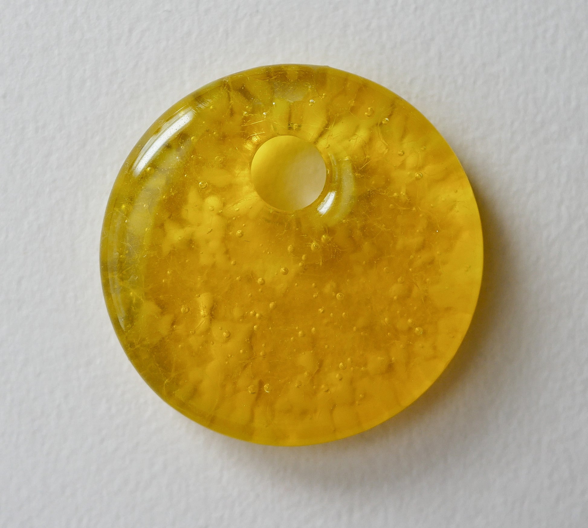 NOTE: This is a handmade glass item. That means it's a little bit fragile. I recommend not wearing it with other necklaces that can clink against it, avoiding dropping it, and don't take it suddenly from one temperature to another. Art glass is not mouth safe.