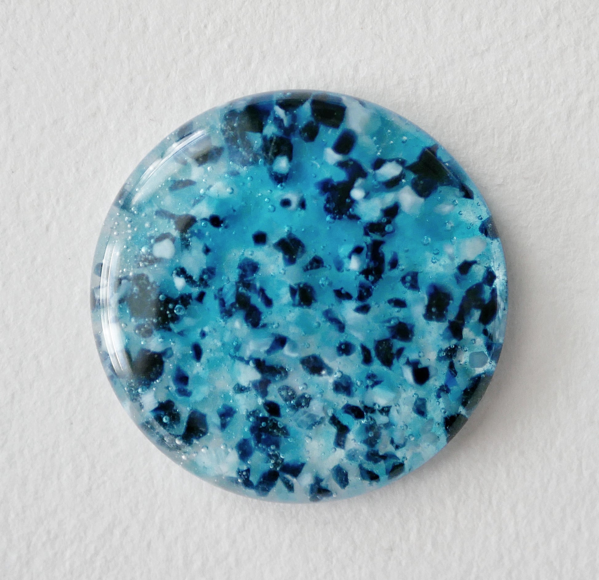 A piece of handmade fused glass in the shape of a circle, great as a gift to remind someone you love them. My worry stones have a smooth glass top and a slightly textured bottom from the ceramic molds they were made in. They also have just a slight indentation in the bottom. They feel good in your hand.
