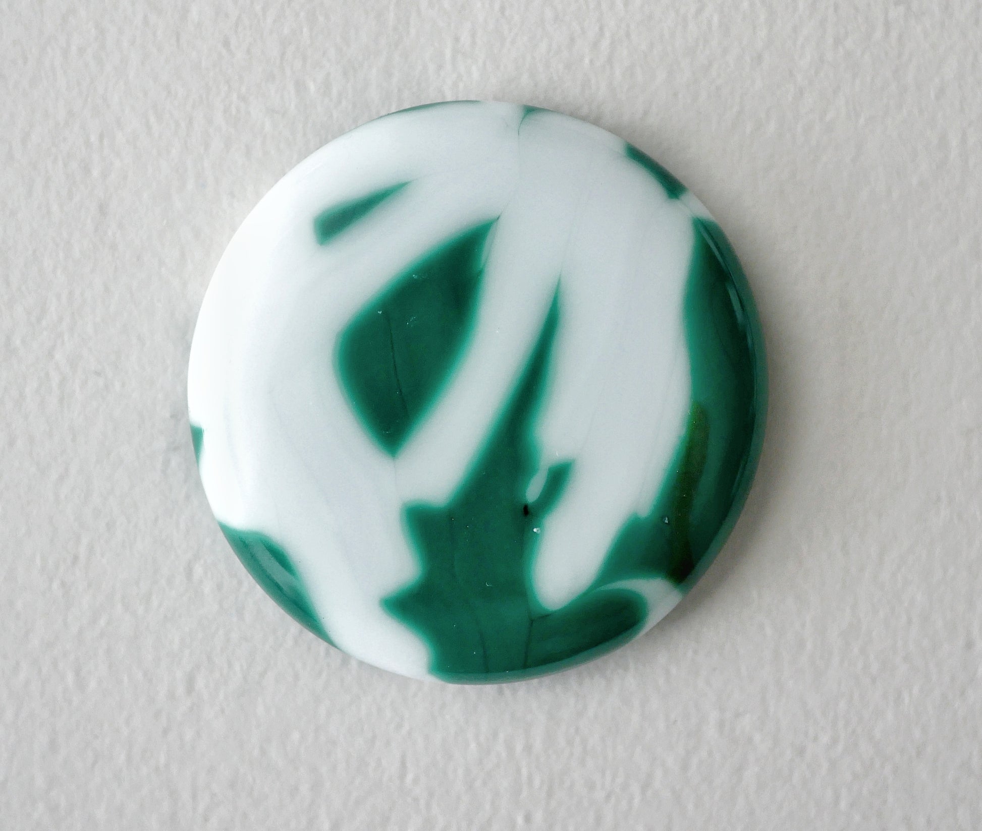 A piece of handmade fused glass in the shape of a circle, great as a gift to remind someone you love them. My worry stones have a smooth glass top and a slightly textured bottom from the ceramic molds they were made in. They also have just a slight indentation in the bottom. They feel good in your hand.