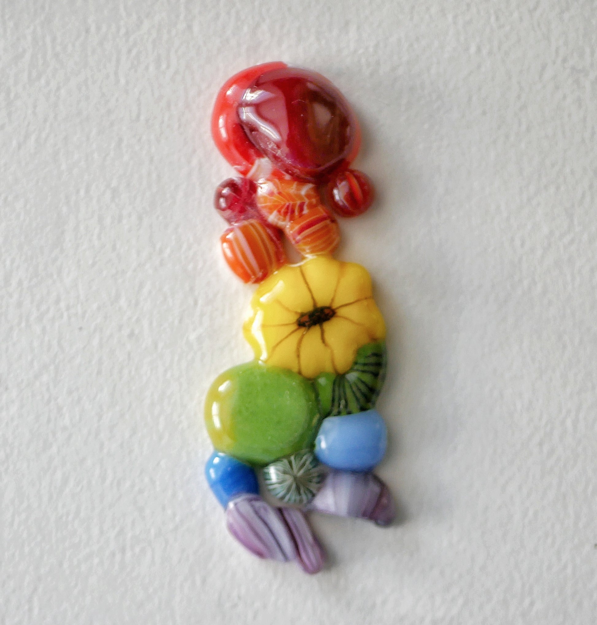 A strange fused glass object made of glass murrini (cane), fused together in my kiln.