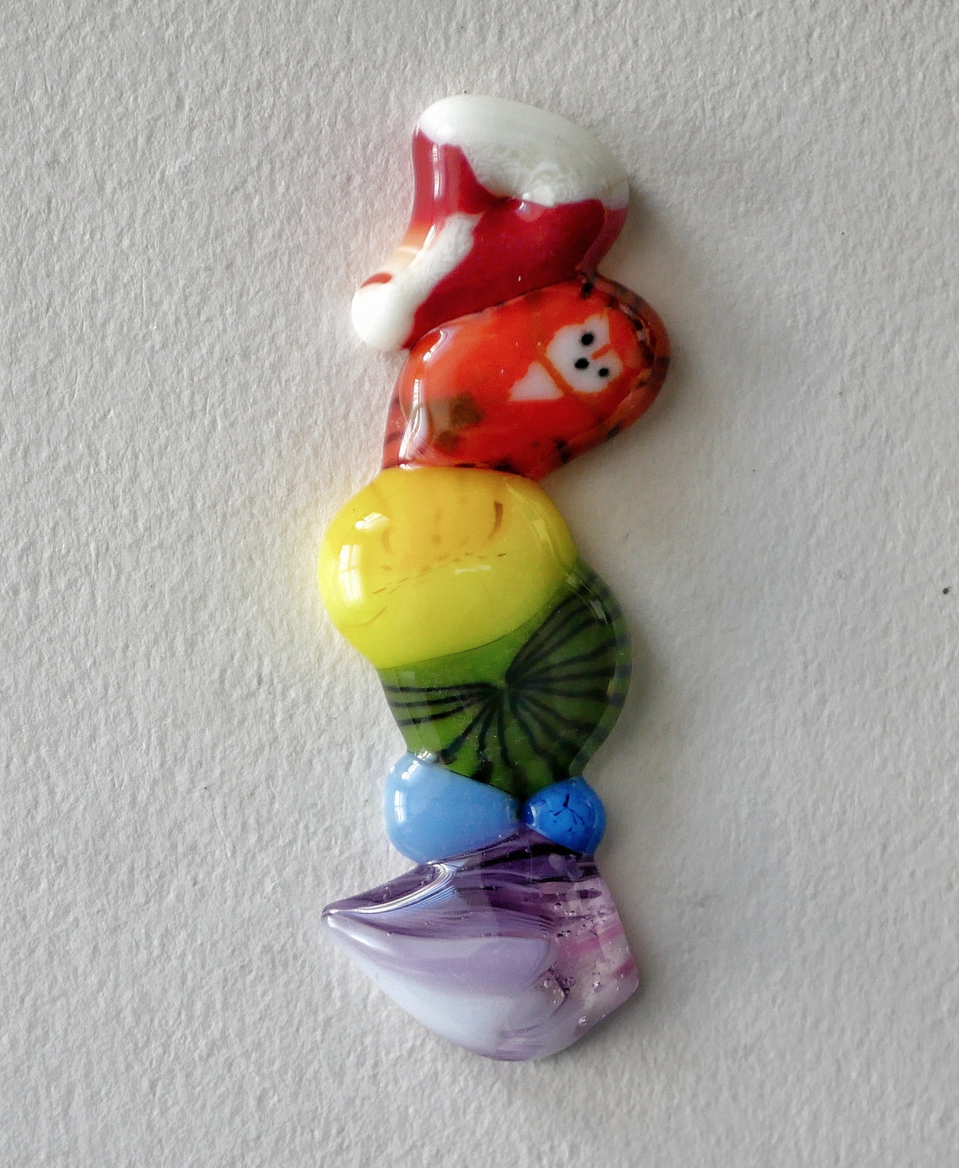 A strange fused glass object made of glass murrini (cane), fused together in my kiln.
