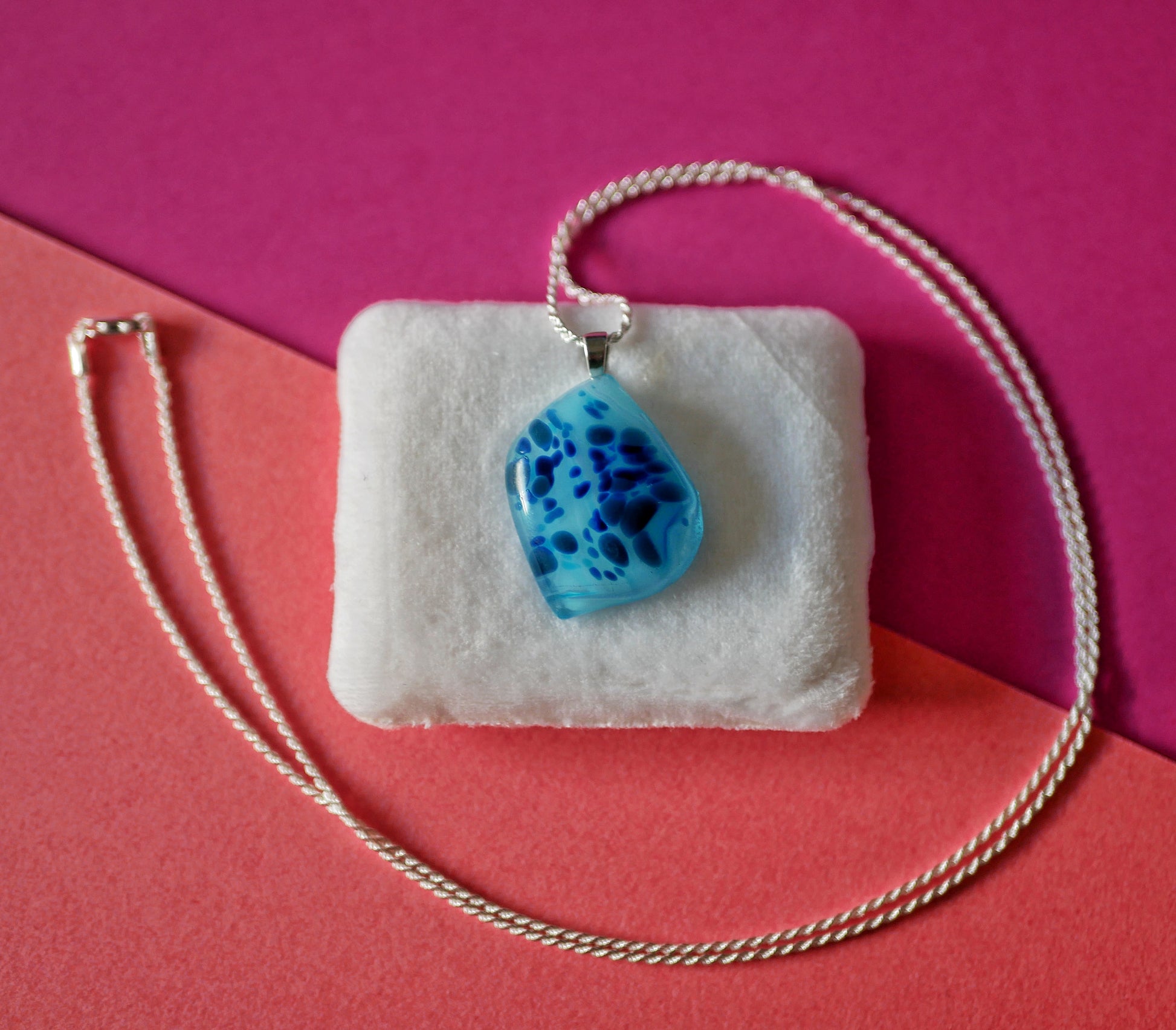NOTE: This is a handmade glass item. That means it's a little bit fragile. I recommend not wearing it with other necklaces that can clink against it, avoiding dropping it, and don't take it suddenly from one temperature to another.