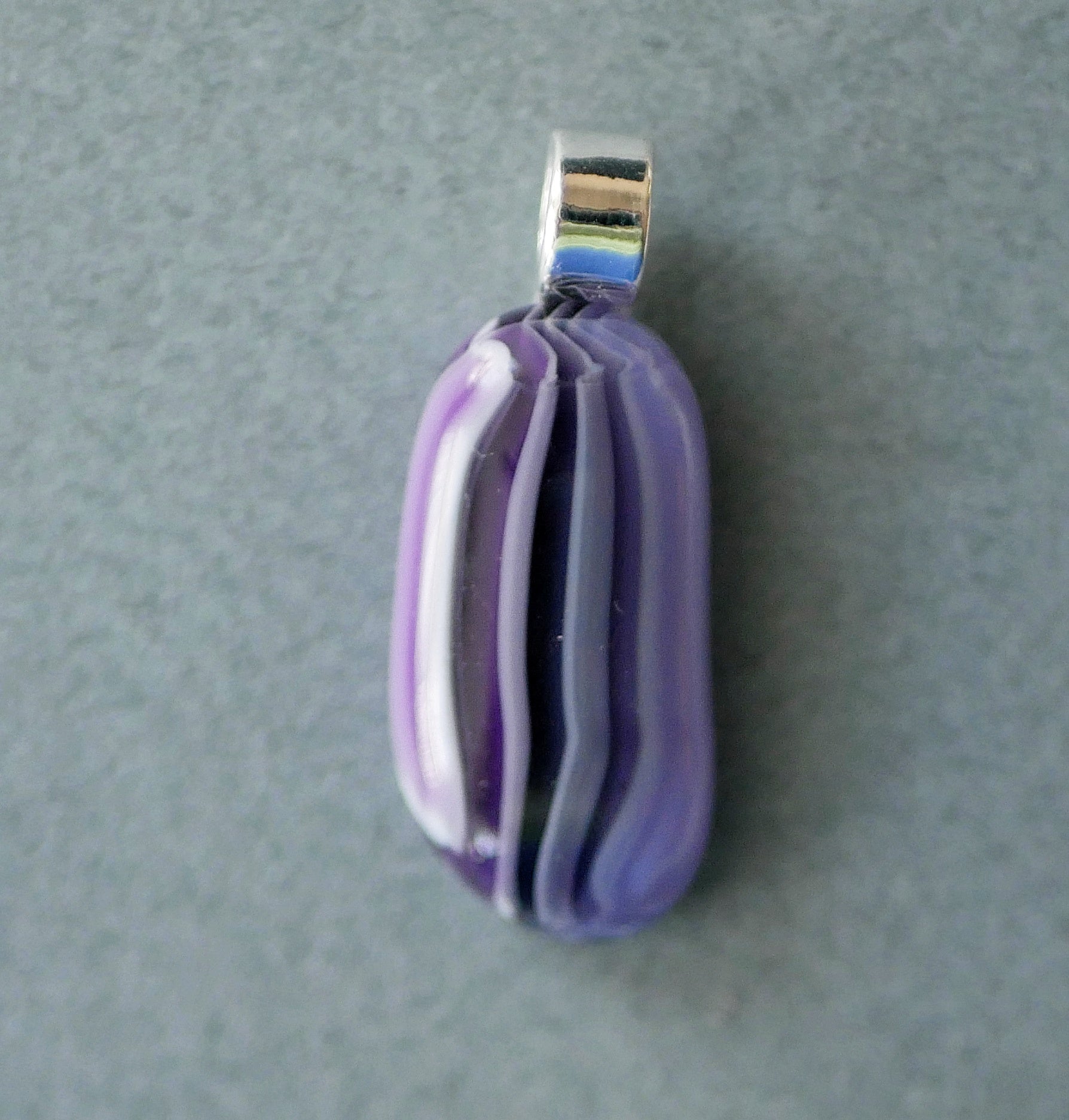 Handmade in my kiln by me! A pendant made from murrine scrap, creating a stripey pattern. These look a bit like sea cucumbers to me.