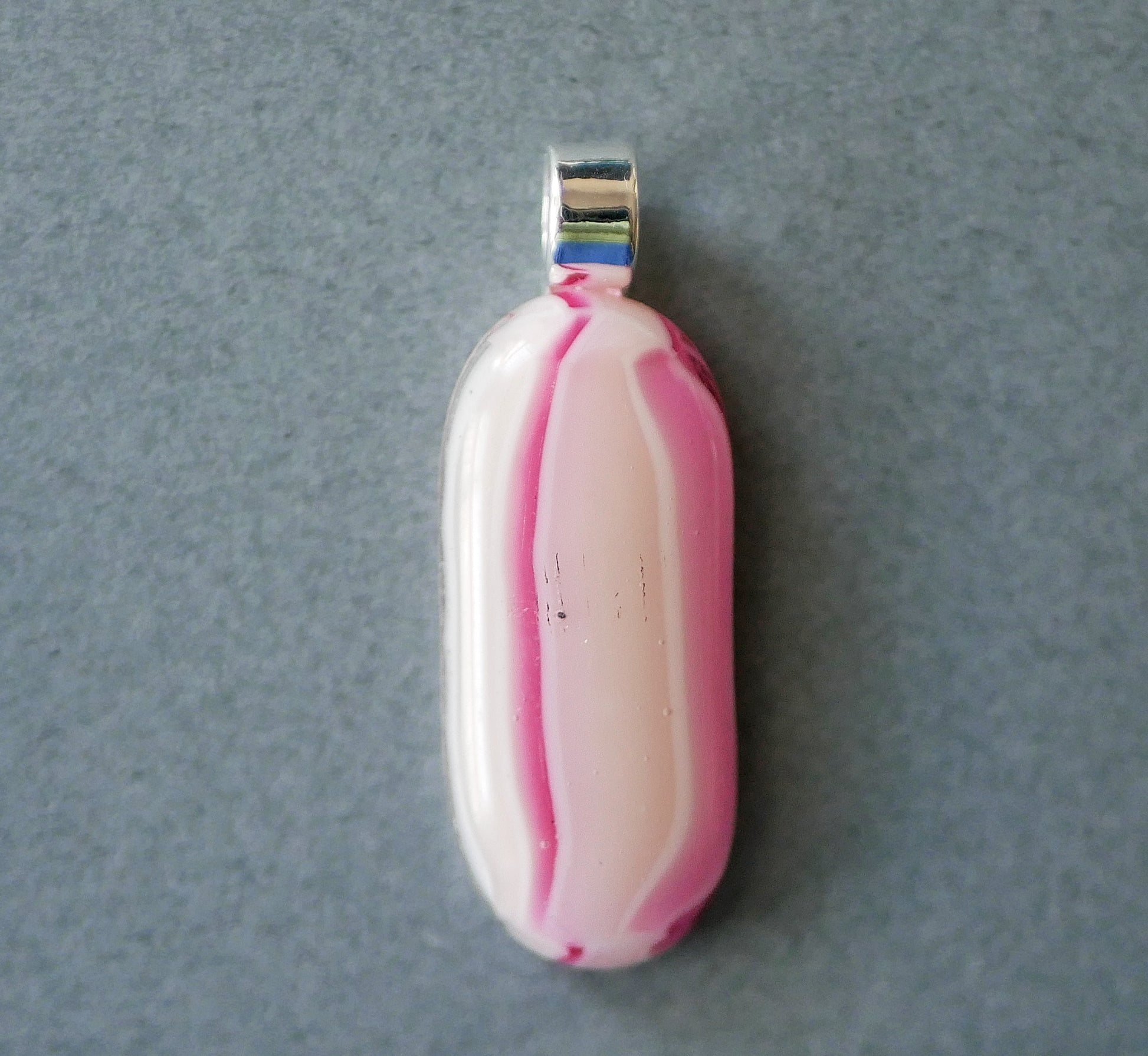 Handmade in my kiln by me! A pendant made from murrine scrap, creating a stripey pattern. These look a bit like sea cucumbers to me.