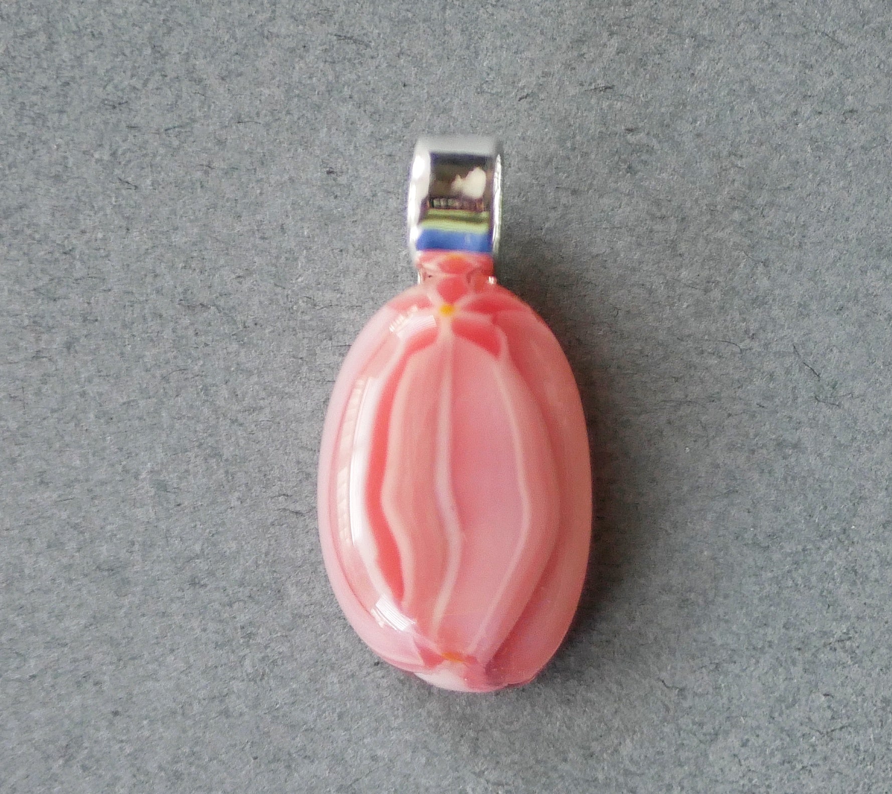 Handmade in my kiln by me! A pendant made from murrine scrap, creating a stripey pattern. These look a bit like sea cucumbers to me.