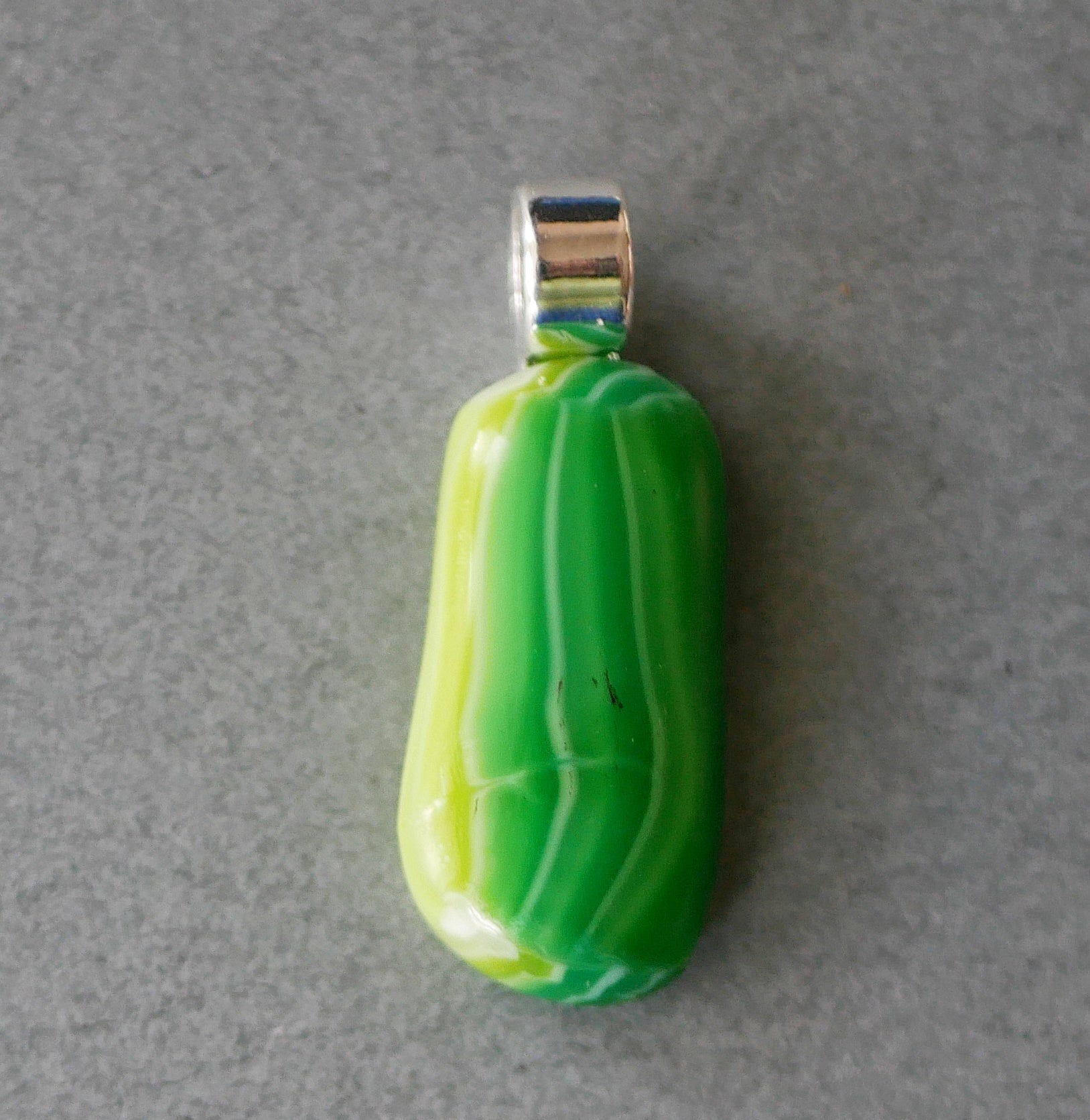 Handmade in my kiln by me! A pendant made from murrine scrap, creating a stripey pattern. These look a bit like sea cucumbers to me.