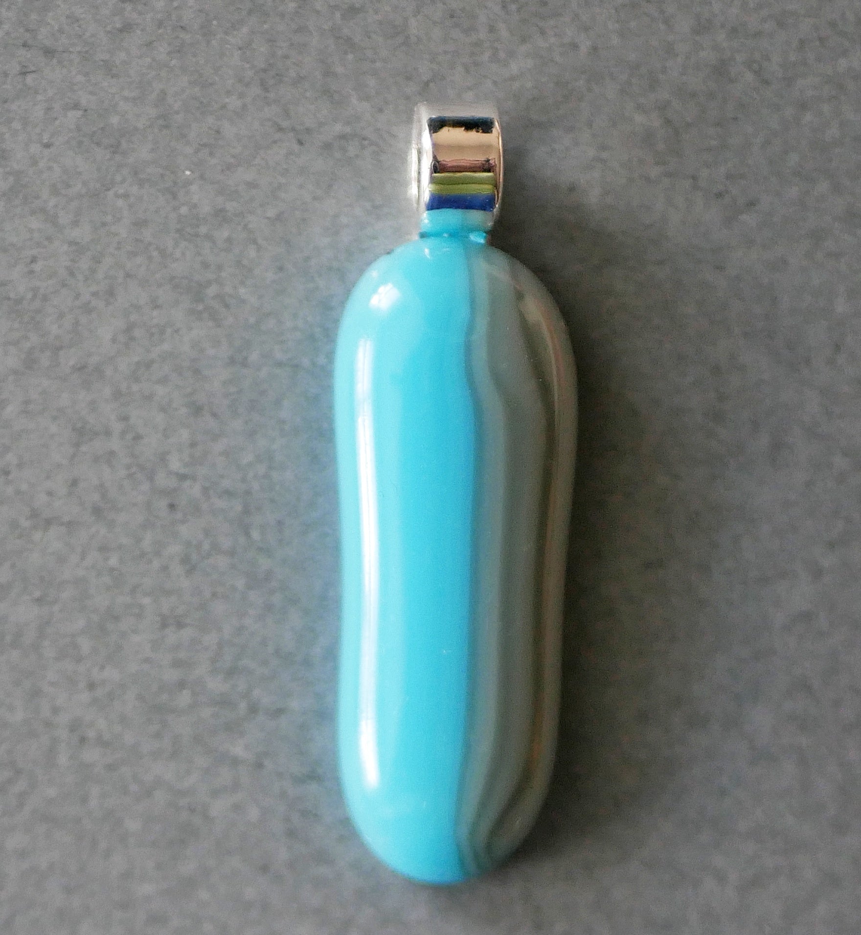NOTE: This is a handmade glass item. That means it's a little bit fragile. I recommend not wearing it with other necklaces that can clink against it, avoiding dropping it, and don't take it suddenly from one temperature to another.