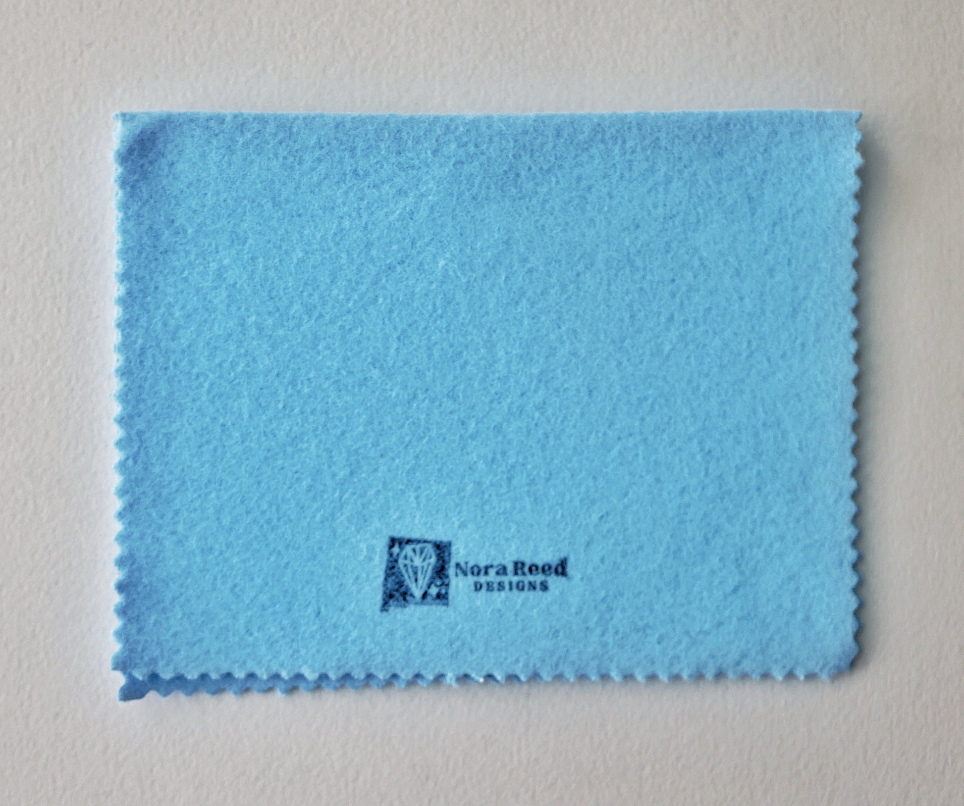 A 7.5 x 5 inch soft blue cloth with gentle microabrasives for polishing jewelry. I have one of these that I use around the house; it's great for getting tarnish off metal jewelry but is soft enough that it won't scratch glass. Safe for plated and filled pieces.