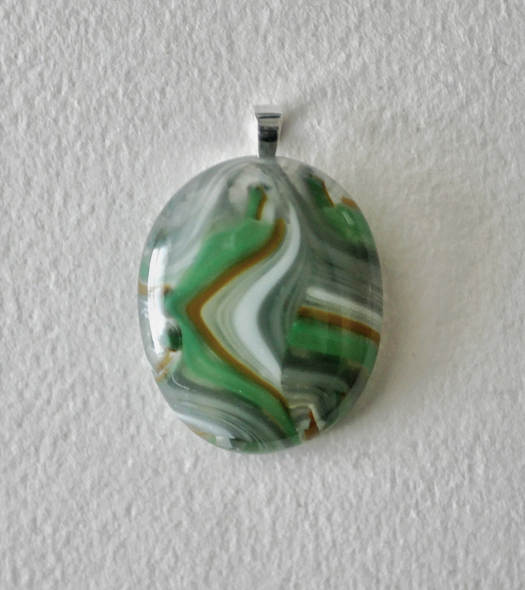 Swirling Grey, White, Brown and Green Pendant (Sterling Silver) (PENDANT ONLY)