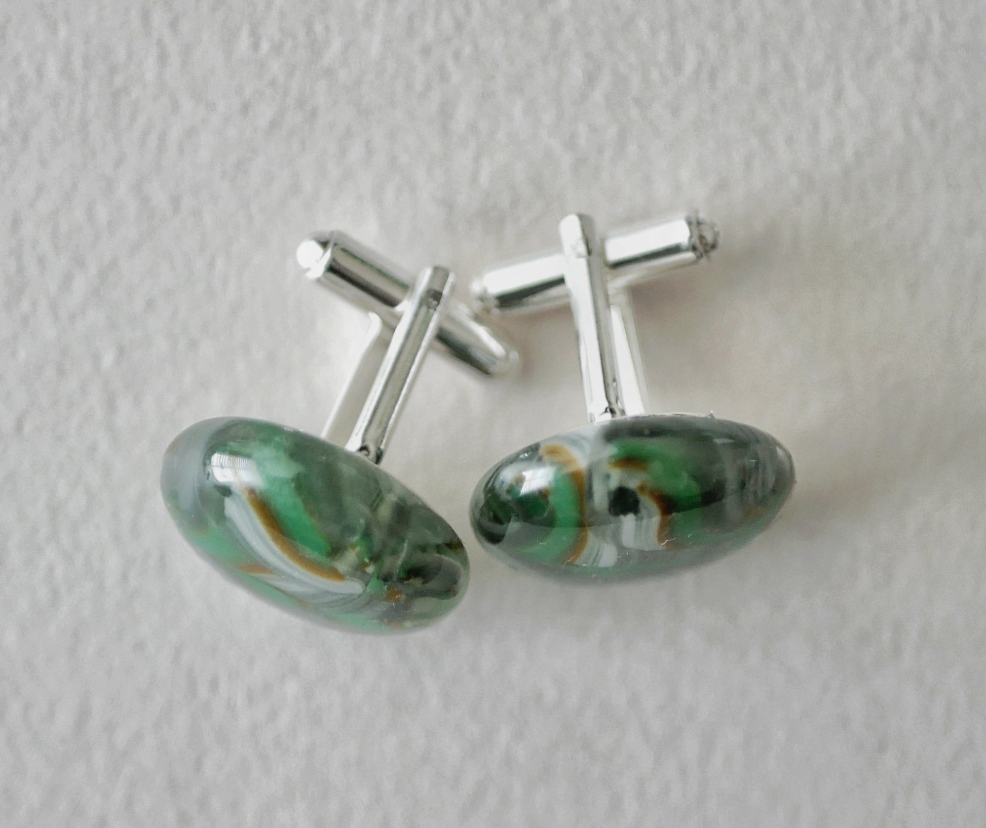 Swirling Grey, White, Brown and Green Sterling Silver Cufflinks