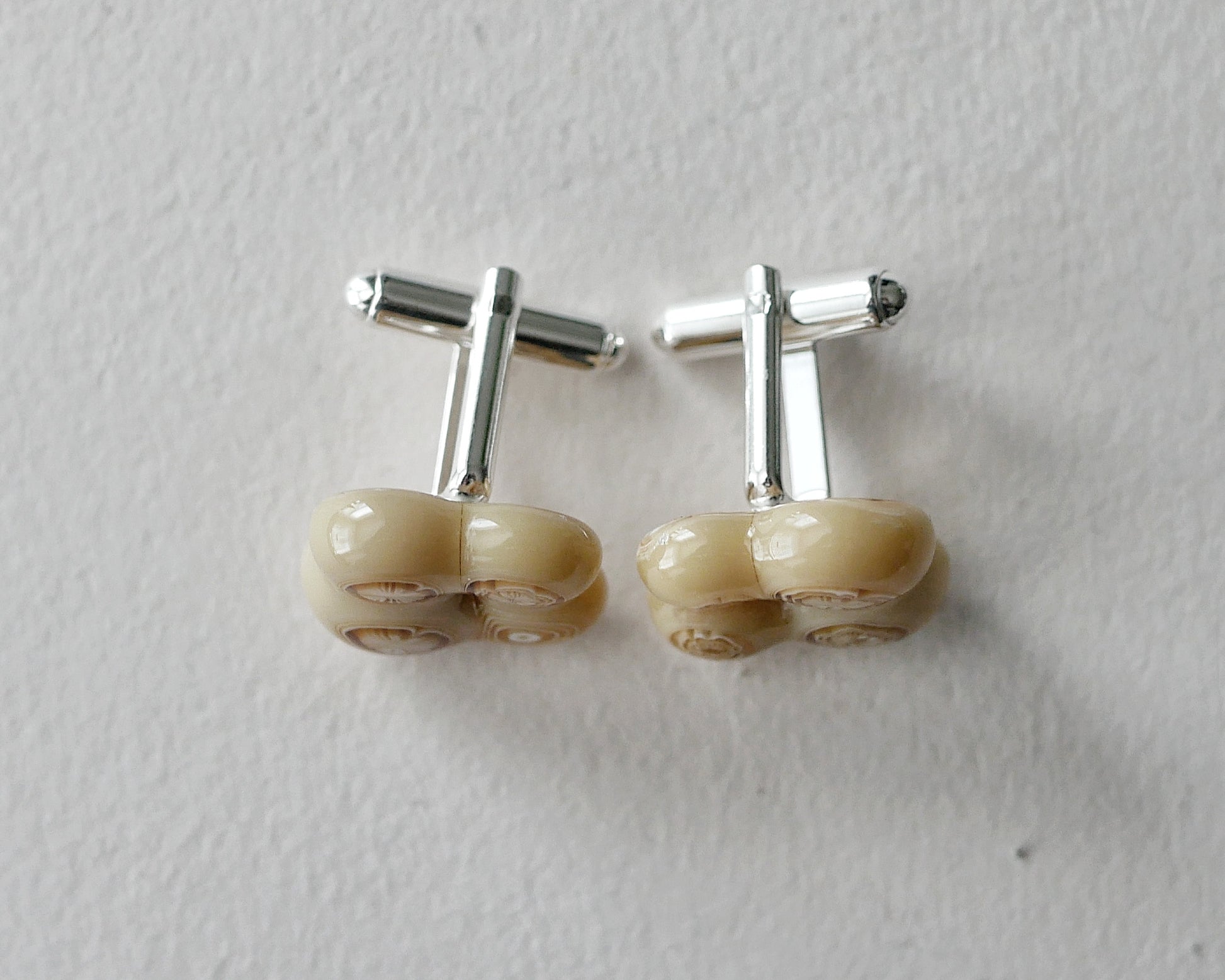 A pair of hinged sterling silver cufflinks with handmade fused glass.