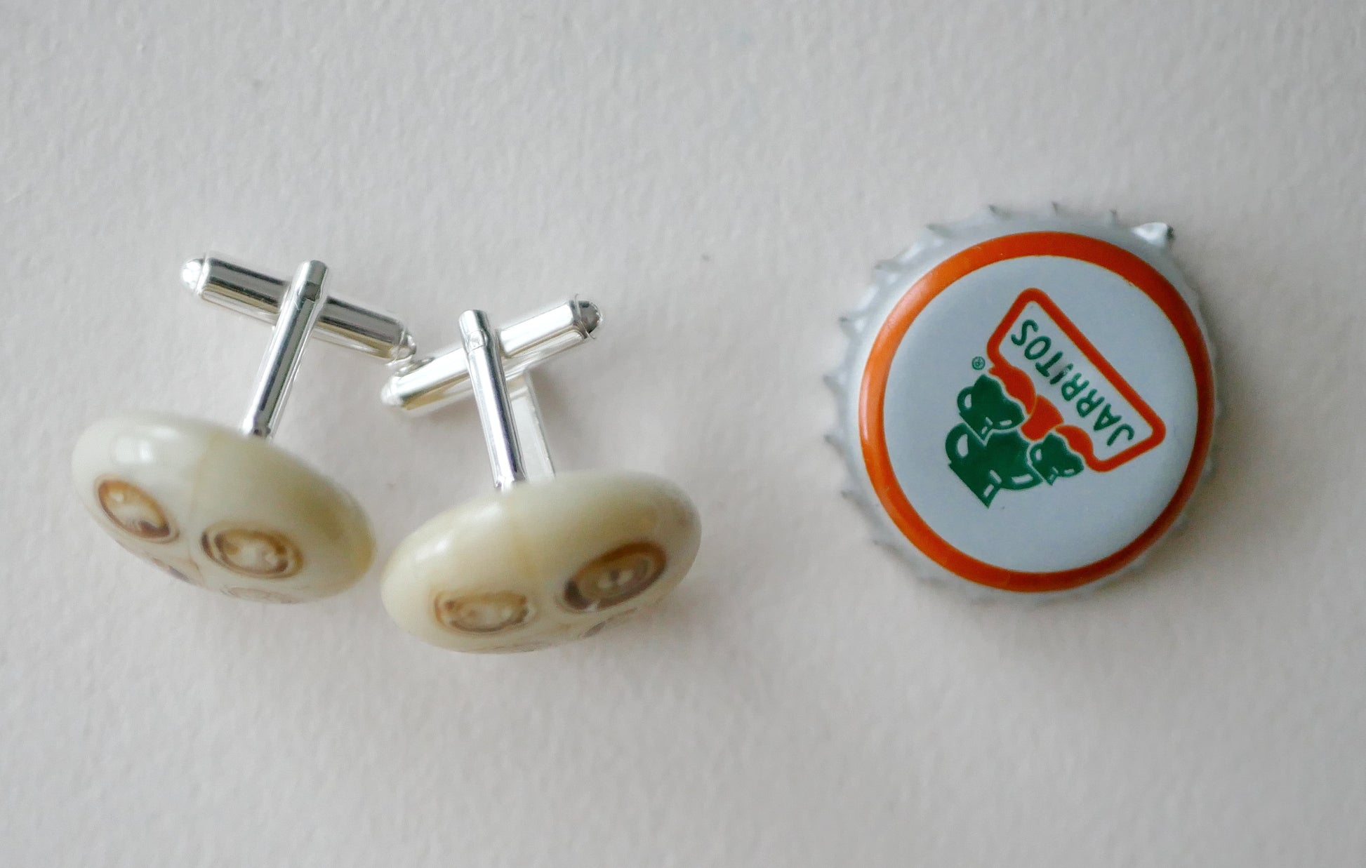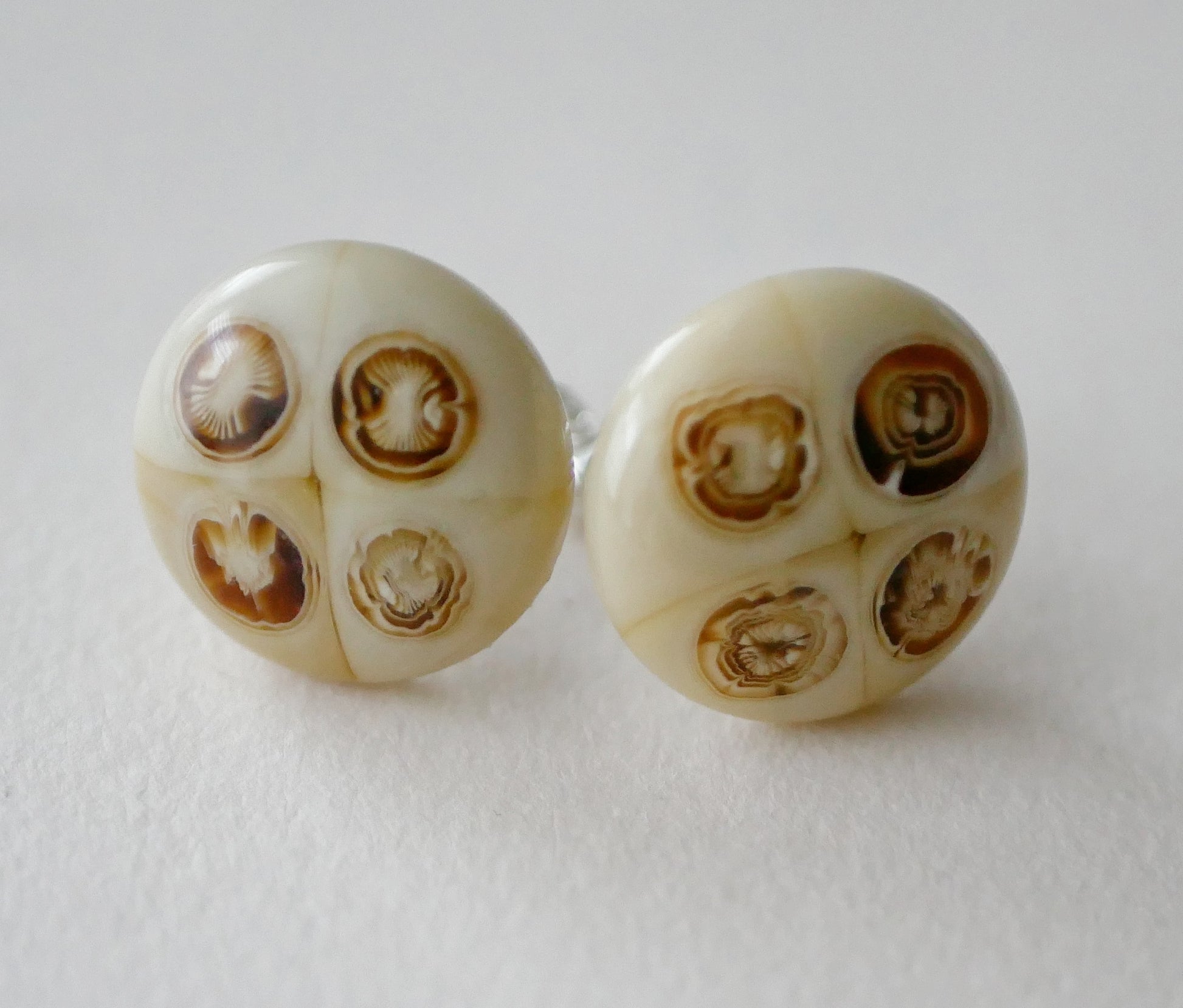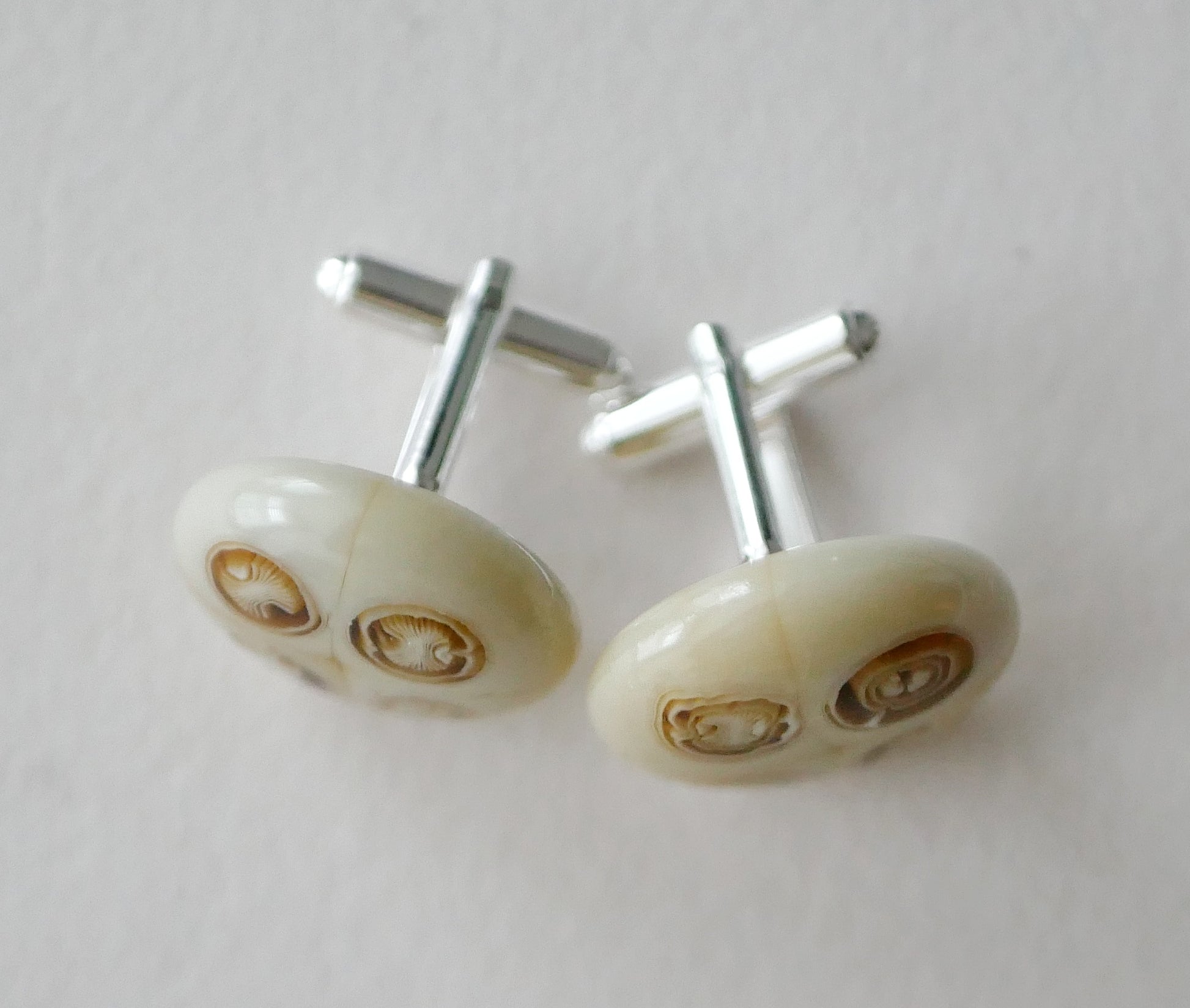 A pair of hinged sterling silver cufflinks with handmade fused glass.