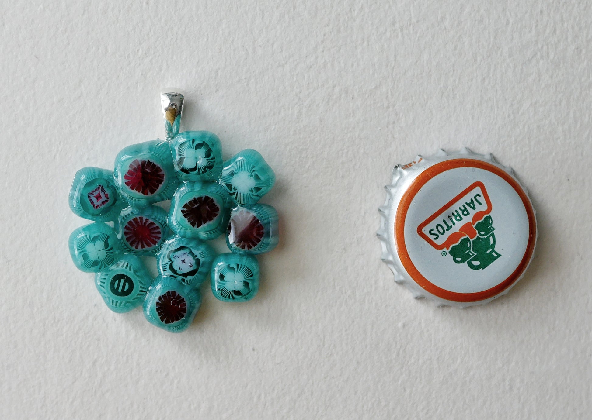 This one uses murrine cane that has been rounded but not fully melted, making the final piece bumpy. Because of this it has thinner parts and the joinings are a little bit less sturdy; you're going to want to be extra careful with it.
