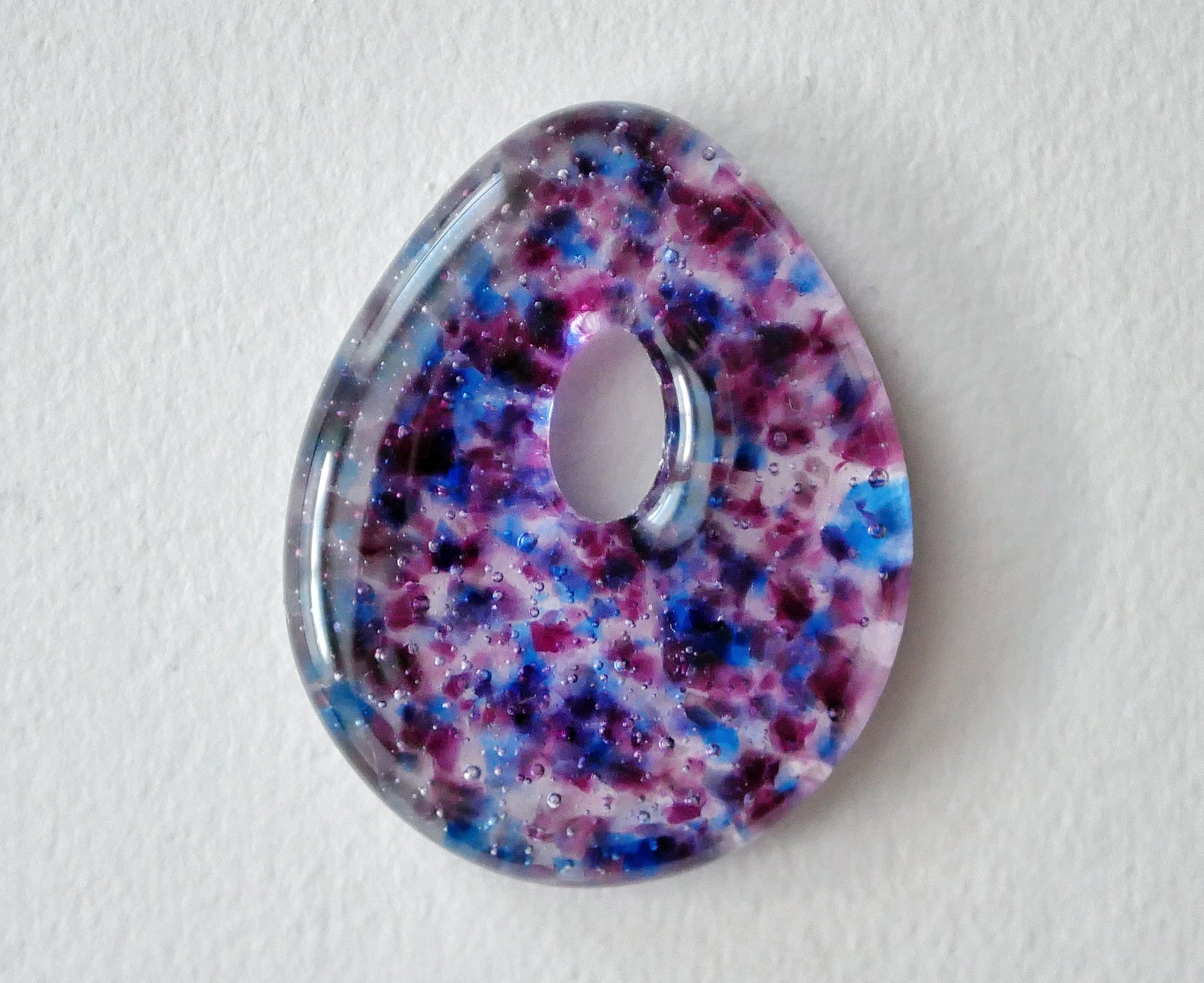 NOTE: This is a handmade glass item. That means it's a little bit fragile. I recommend not wearing it with other necklaces that can clink against it, avoiding dropping it, and don't take it suddenly from one temperature to another. Art glass is not mouth safe.