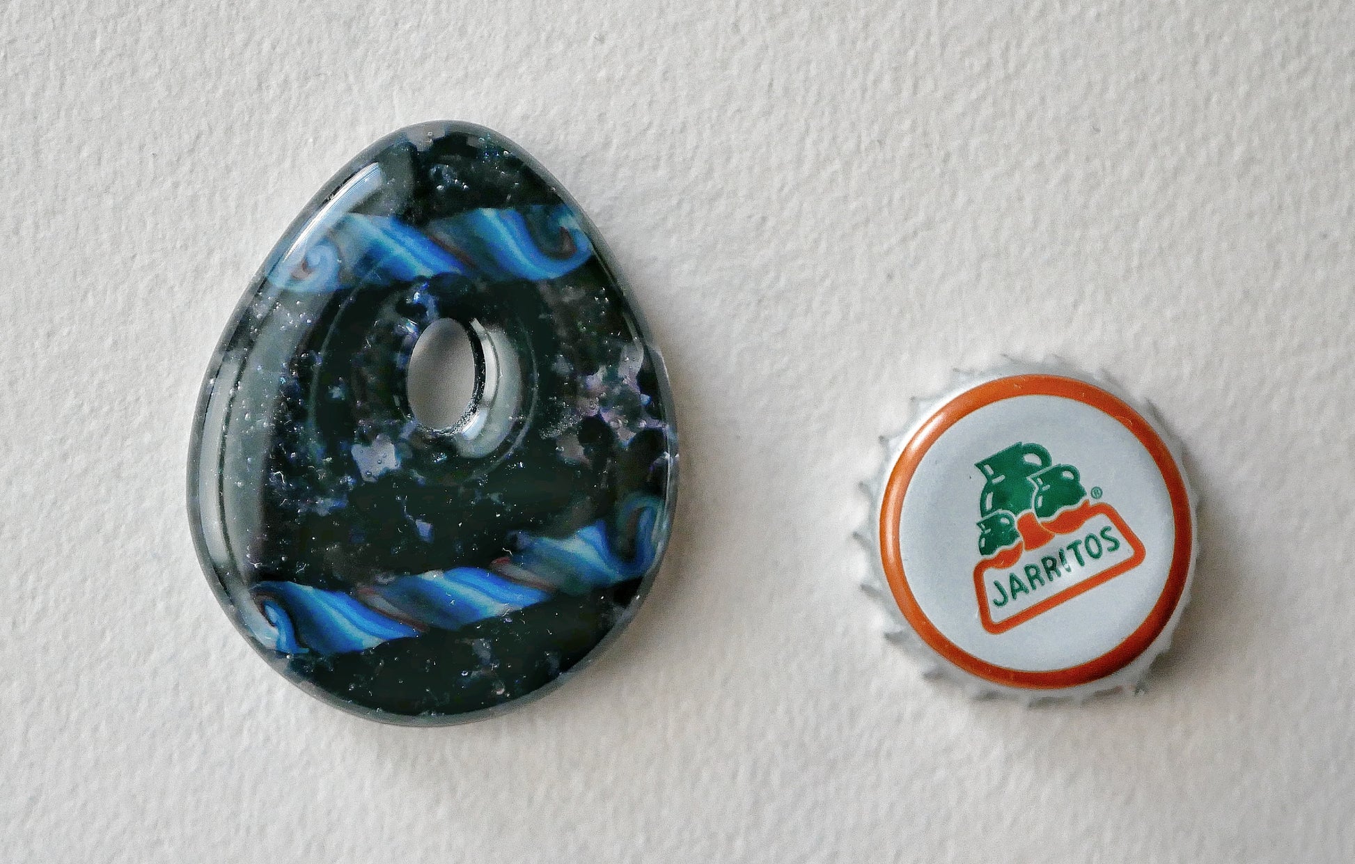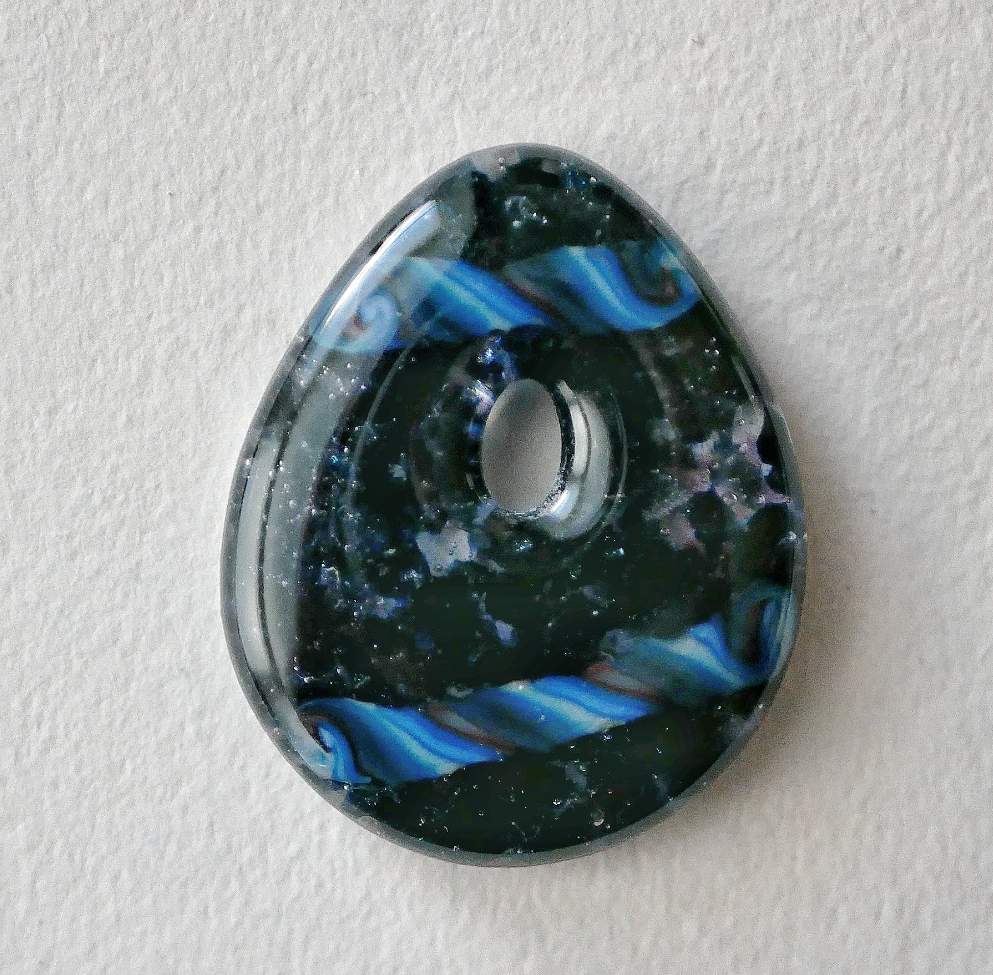 NOTE: This is a handmade glass item. That means it's a little bit fragile. I recommend not wearing it with other necklaces that can clink against it, avoiding dropping it, and don't take it suddenly from one temperature to another. Art glass is not mouth safe.