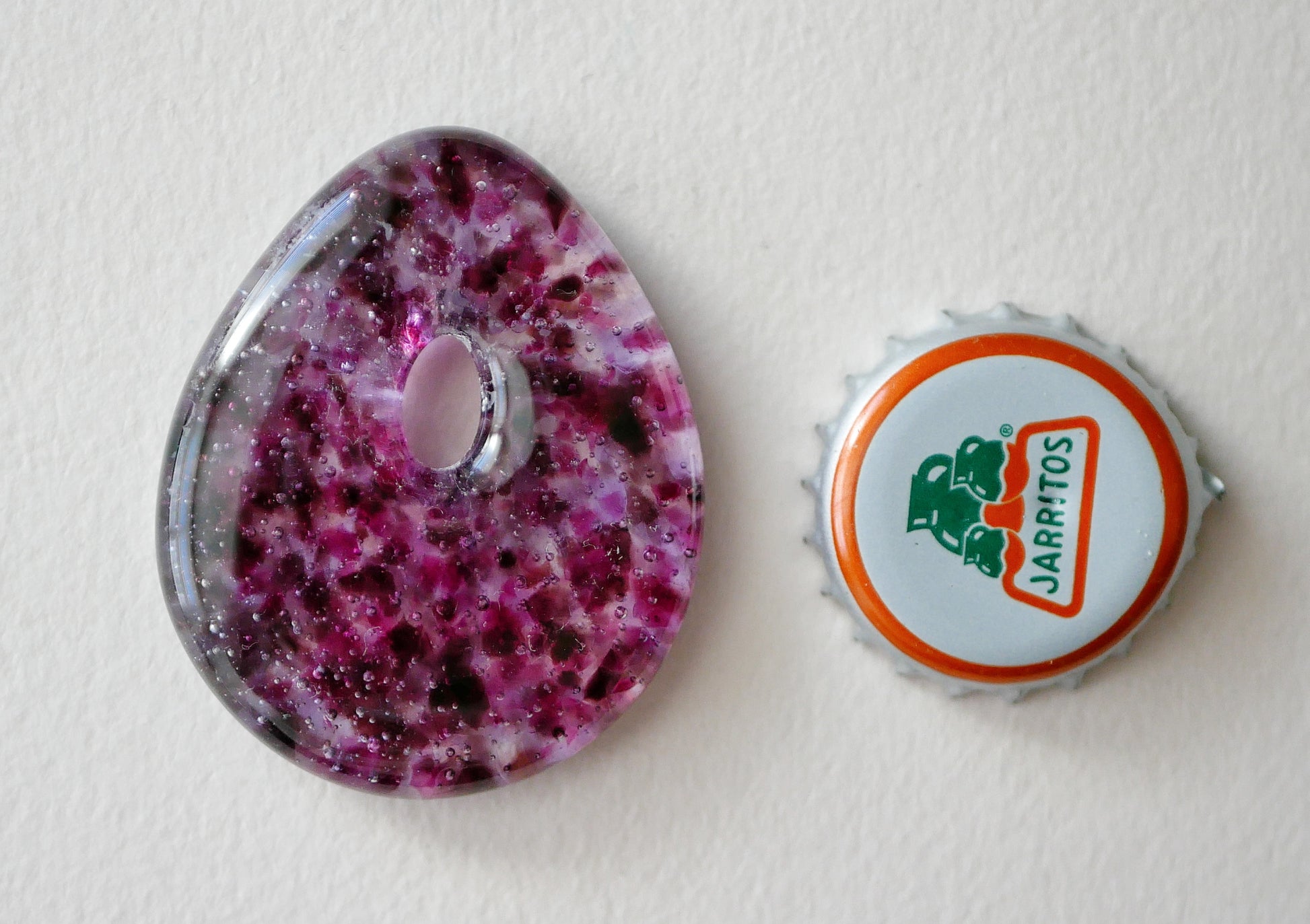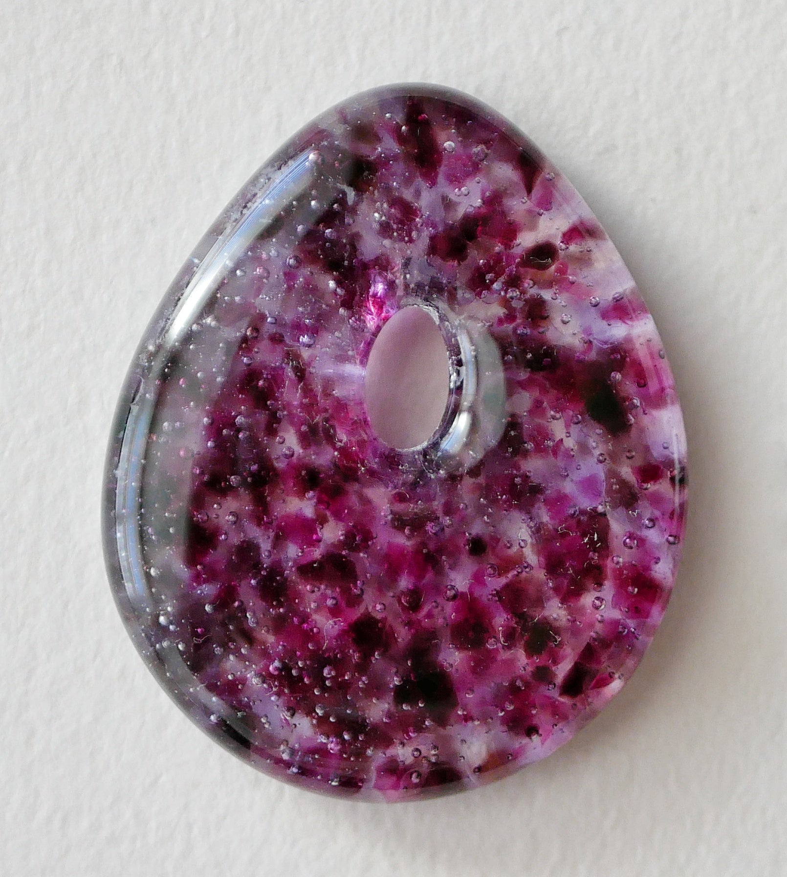 NOTE: This is a handmade glass item. That means it's a little bit fragile. I recommend not wearing it with other necklaces that can clink against it, avoiding dropping it, and don't take it suddenly from one temperature to another. Art glass is not mouth safe.