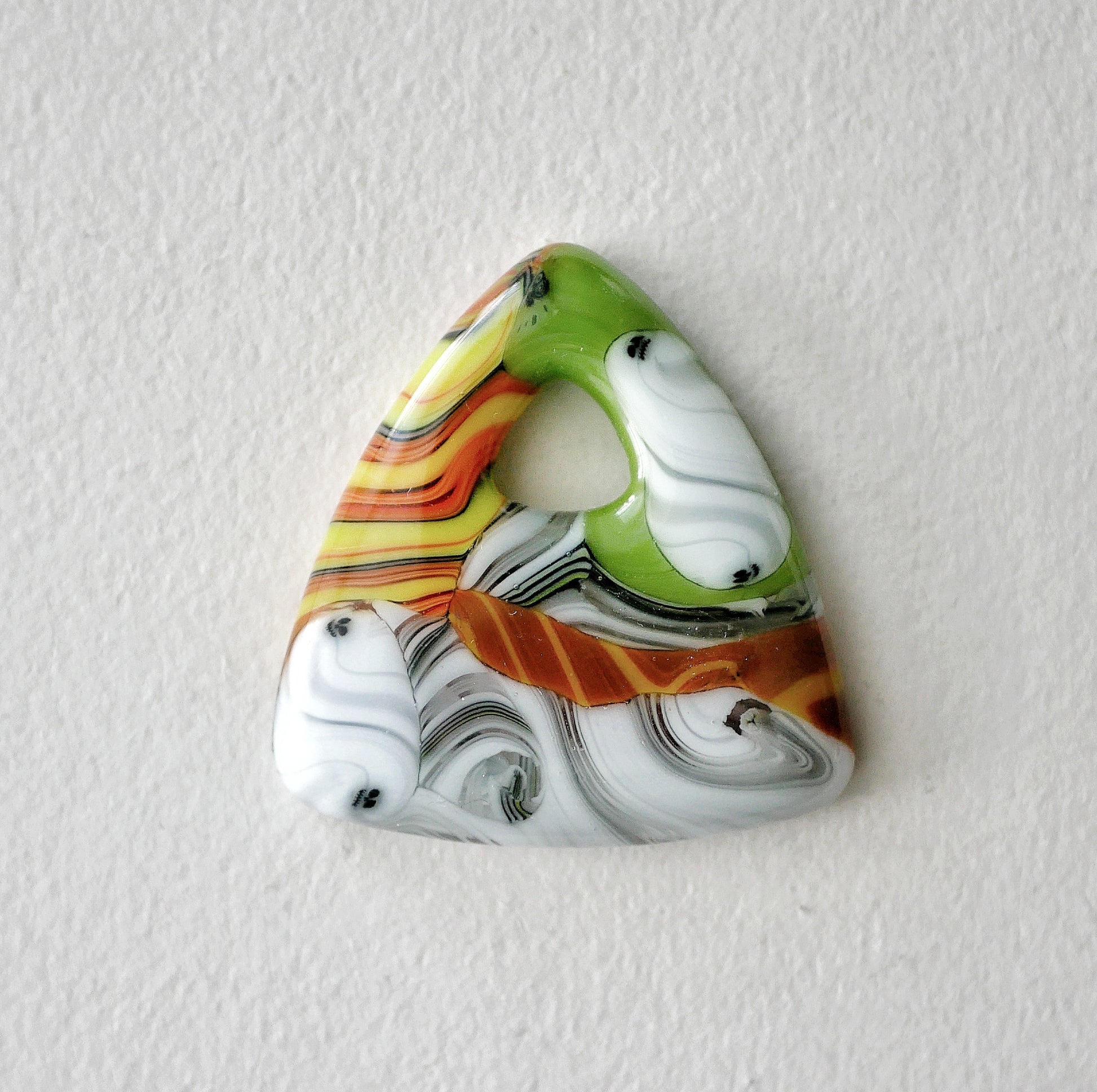 NOTE: This is a handmade glass item. That means it's a little bit fragile. I recommend not wearing it with other necklaces that can clink against it, avoiding dropping it, and don't take it suddenly from one temperature to another. Art glass is not mouth safe.