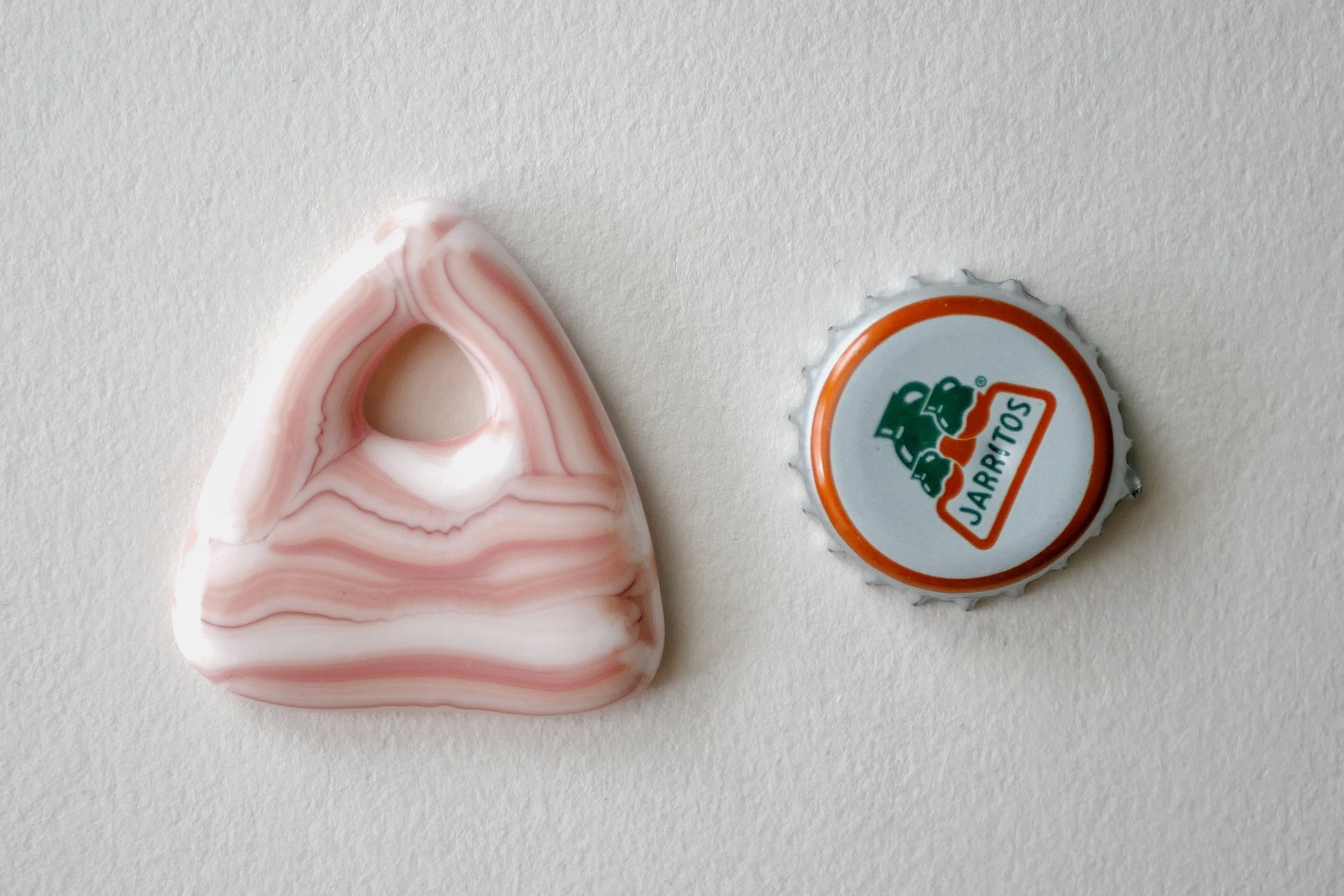 Triangle Pendant: Pink and White Spectral Squiggles #1 (PENDANT ONLY)