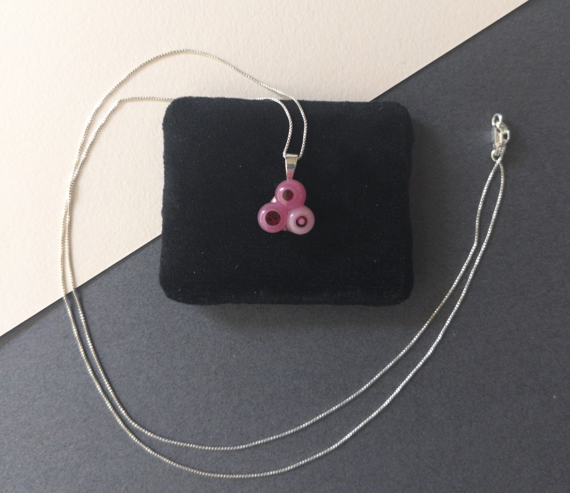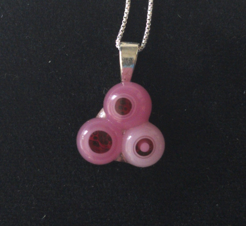 Handmade in my kiln by me! Small clusters of 3 blobs of murrine glass. Sterling silver bail and chain (24 inches). These vary a bit from pendant to pendant; yours will not be exactly the same as the one pictured.