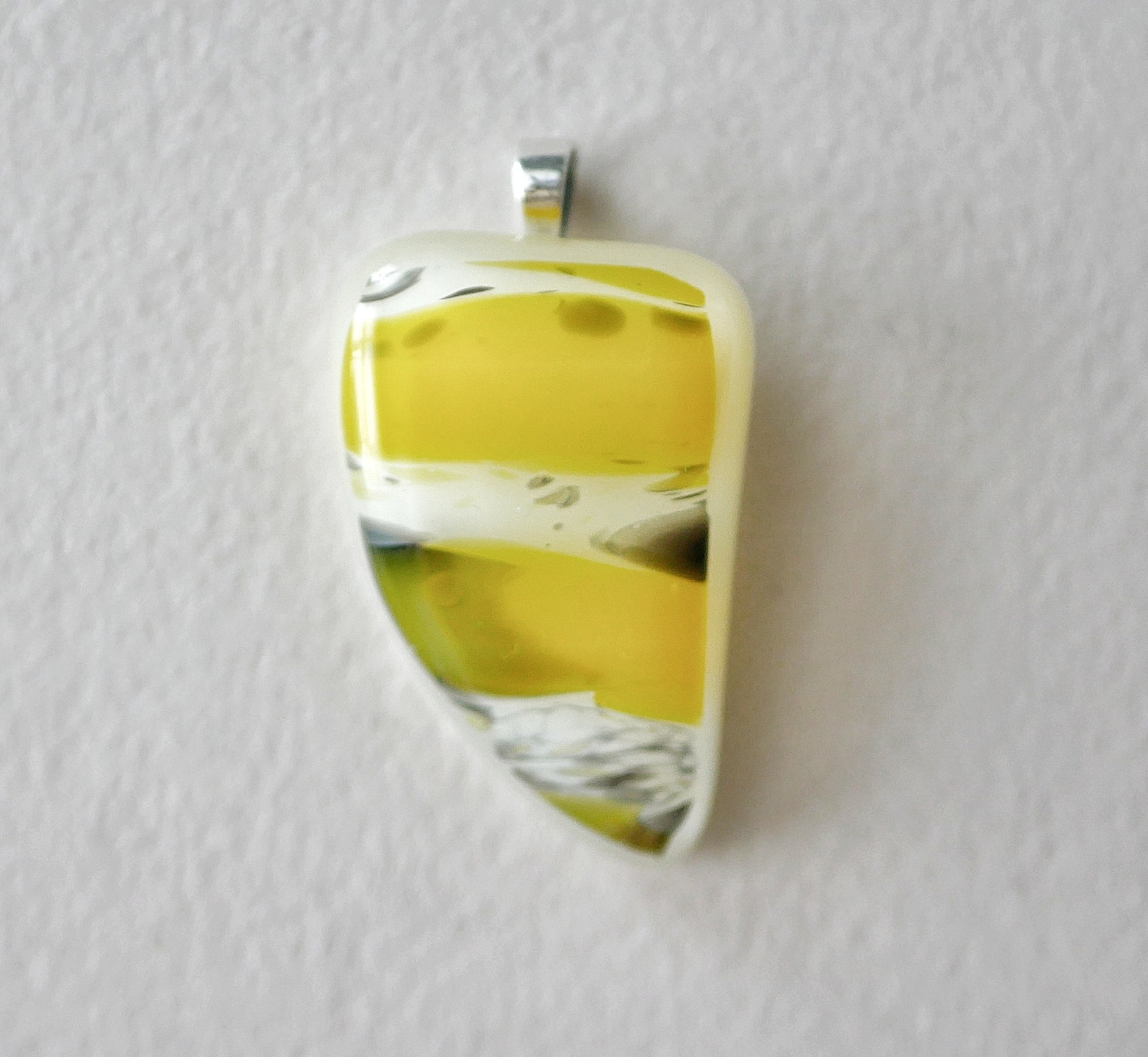 Handmade in my kiln by me! A small pendant with a sterling silver bail.