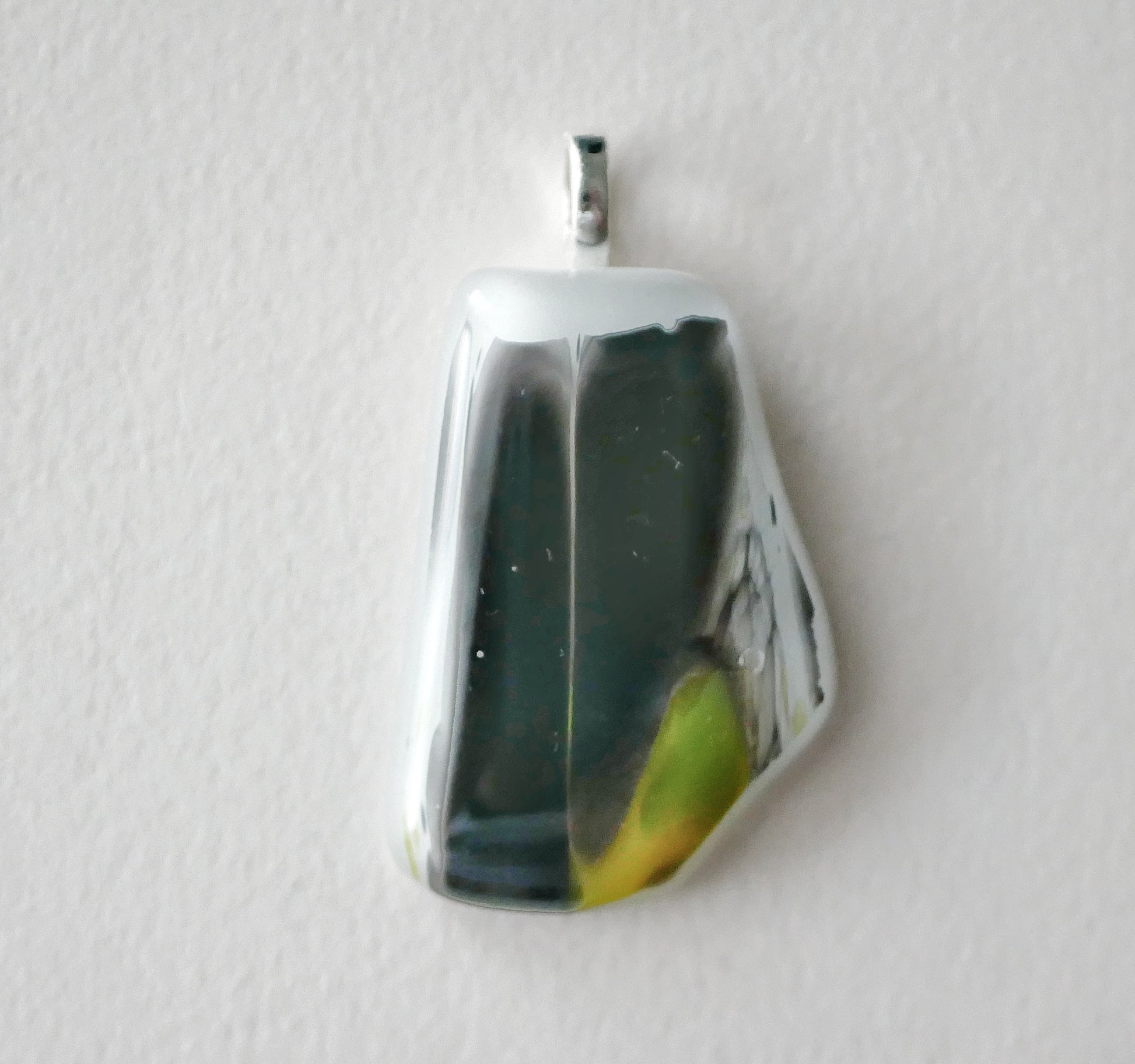 Handmade in my kiln by me! A small pendant with a sterling silver bail.