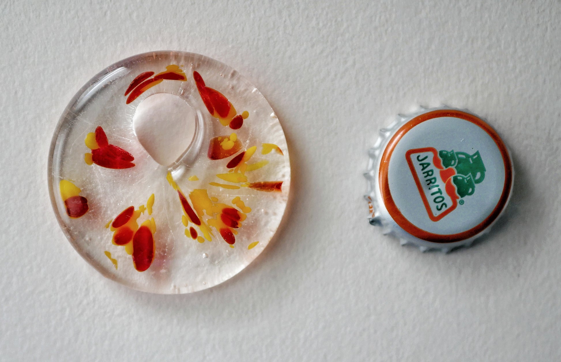 Handmade in my kiln by me! They're called "gravity assisted" because that streaking effect on the colors is from stretching the colors when it melts. (Surface tension also helps, but "surface tension assisted " does not sound as cool.)