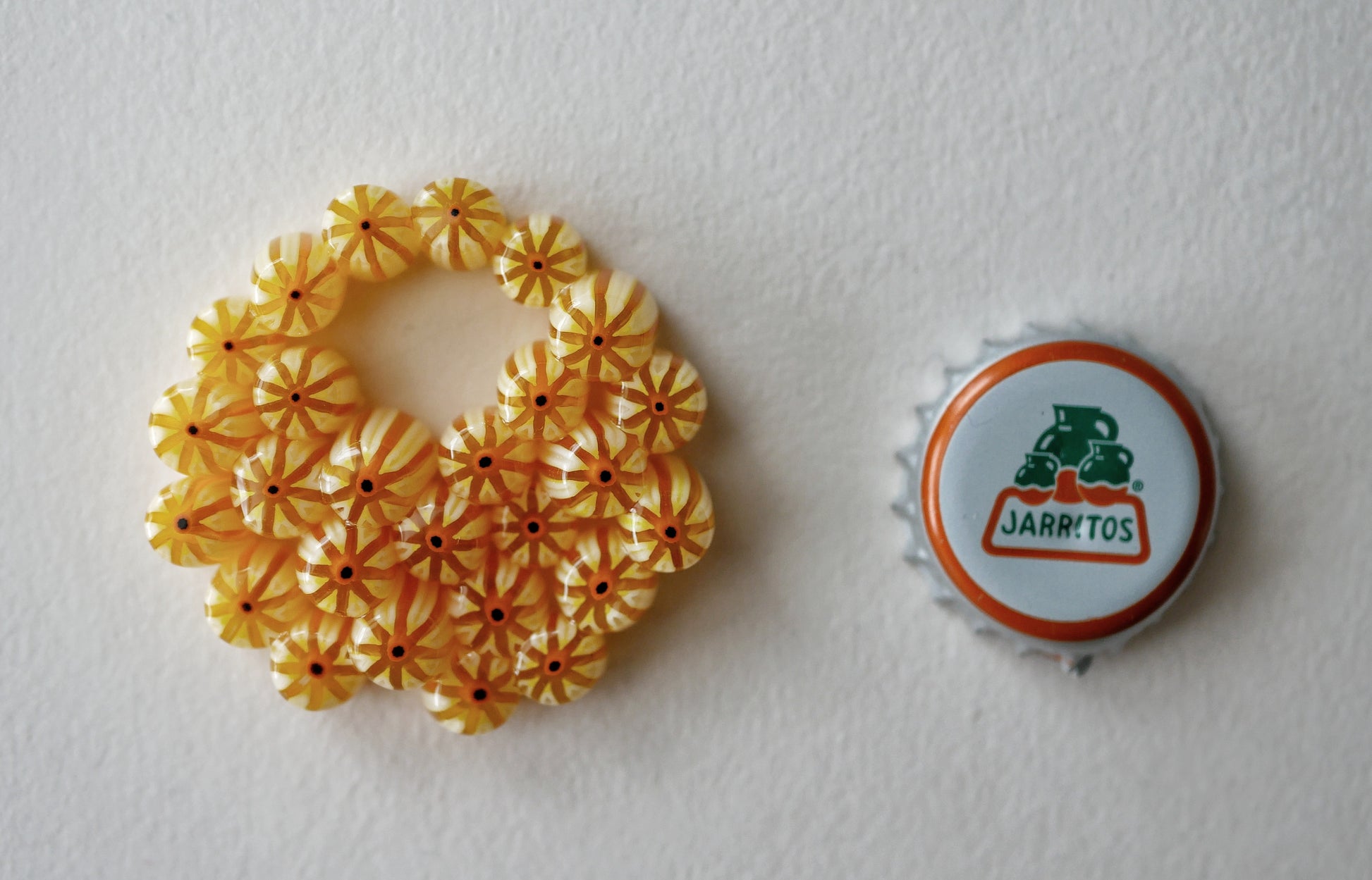 Handmade in my kiln by me! This one uses murrine cane that has been rounded but not fully melted, making the final piece bumpy. Because of this it has thinner parts and the joinings are a little bit less sturdy; you're going to want to be extra careful with it.
